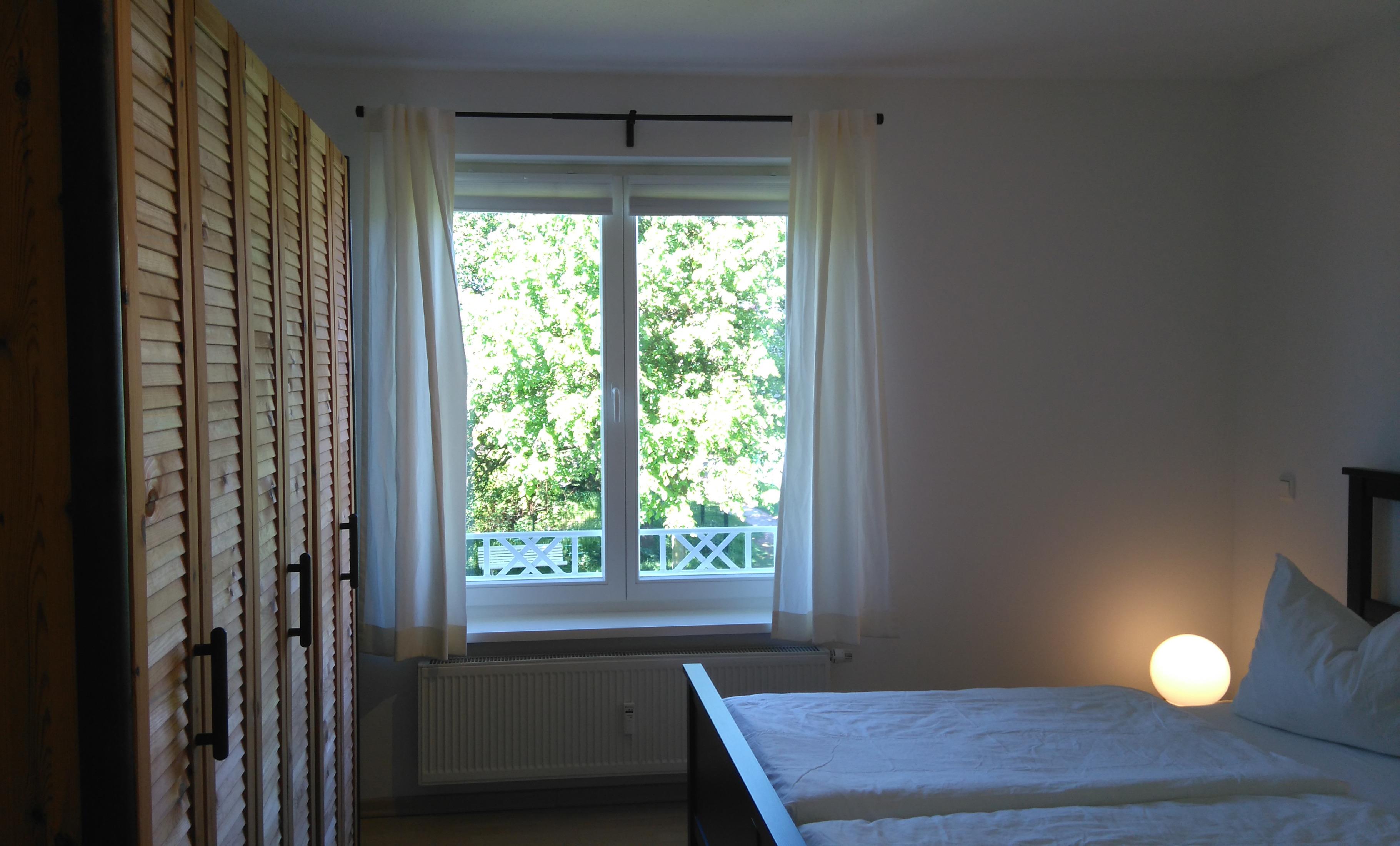 Das Schlafzimmer hat ein großes bequemes Doppelbett (180x200), einen geräumigen Kleiderschrank und eine Kleiderablage.