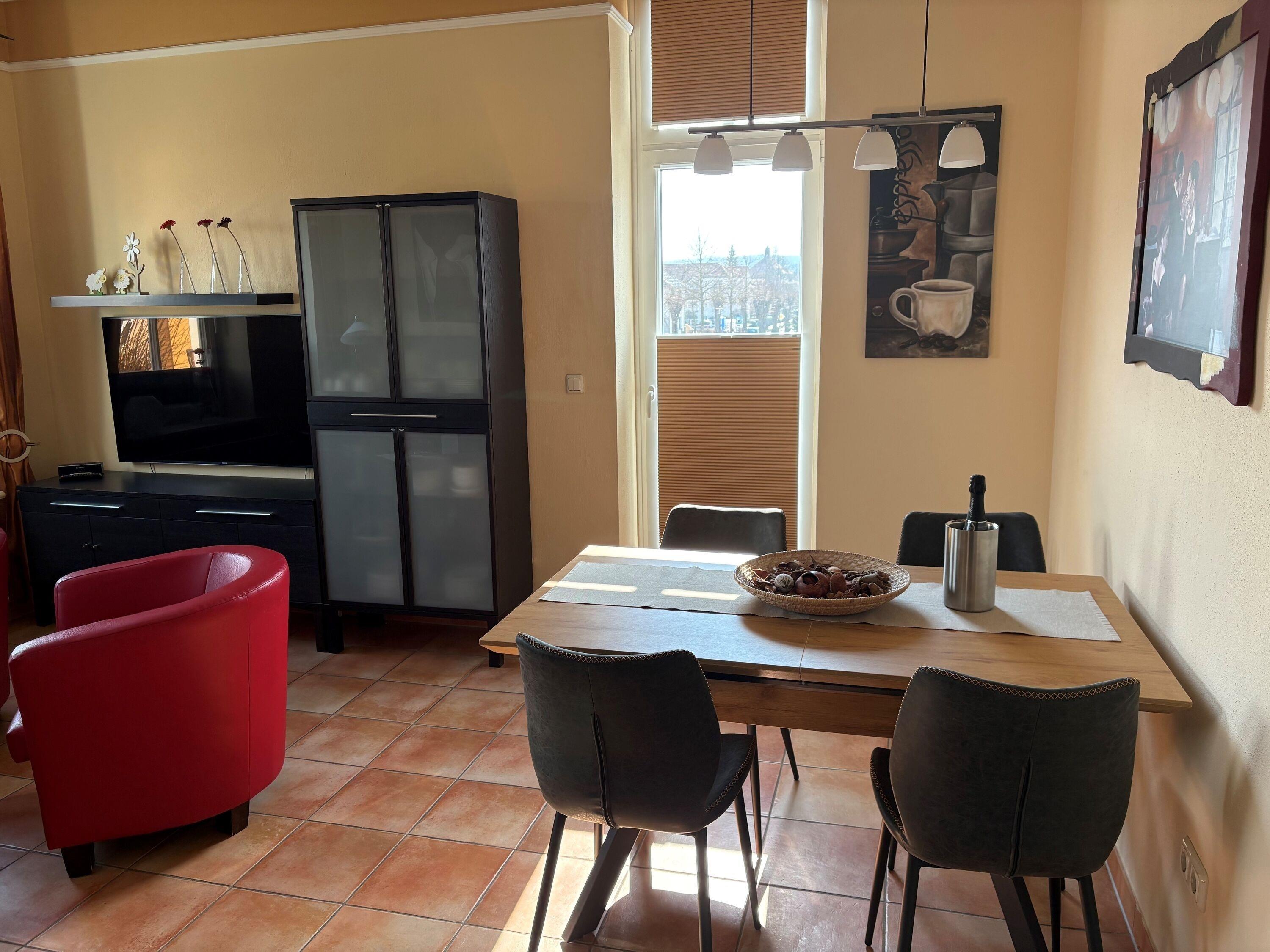 Die moderne Wohnung bietet 4 Personen Platz zum Entspannen. Es erwartet Sie ein modern eingerichteter Wohnbereich mit angrenzender Küche.