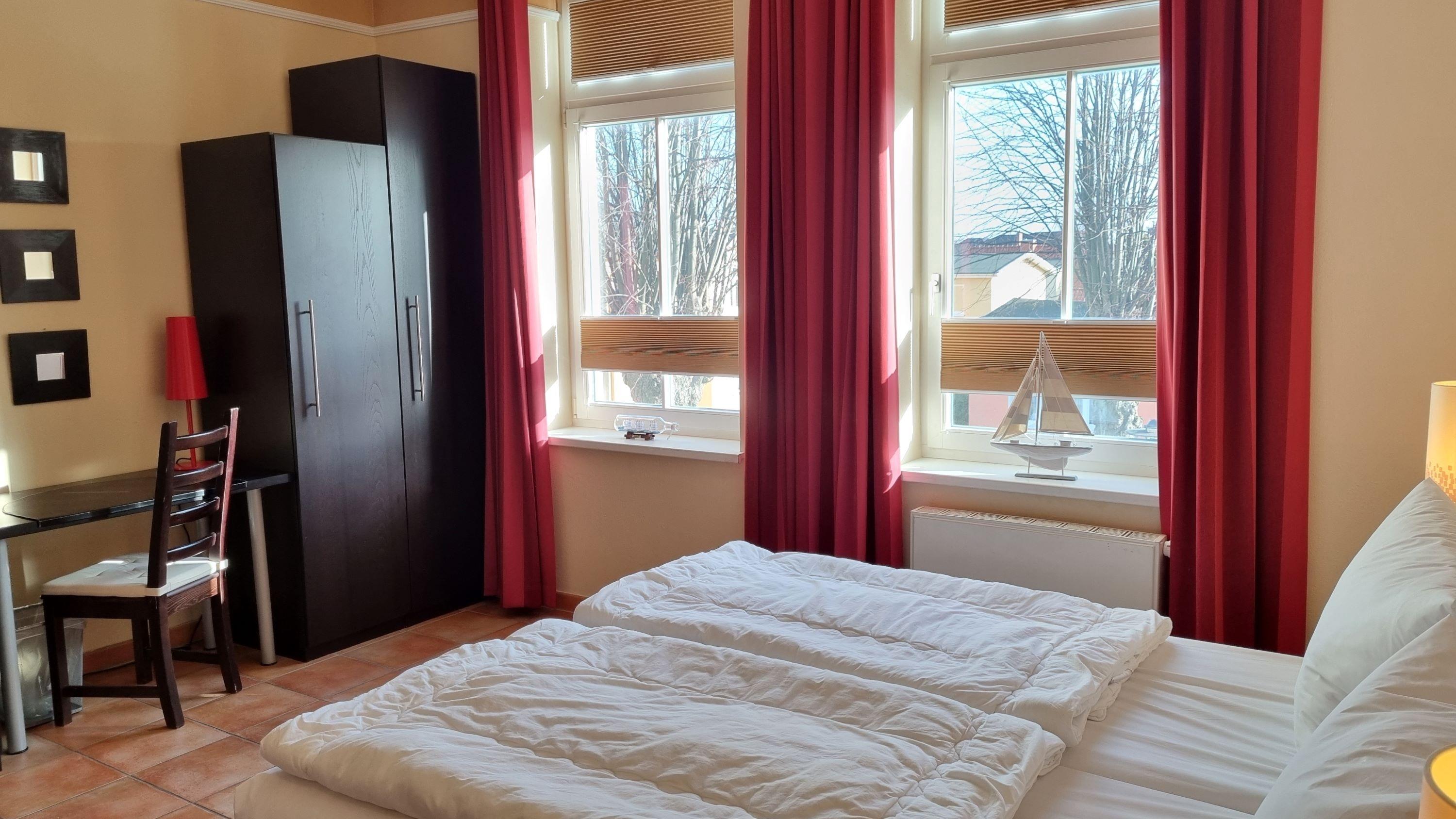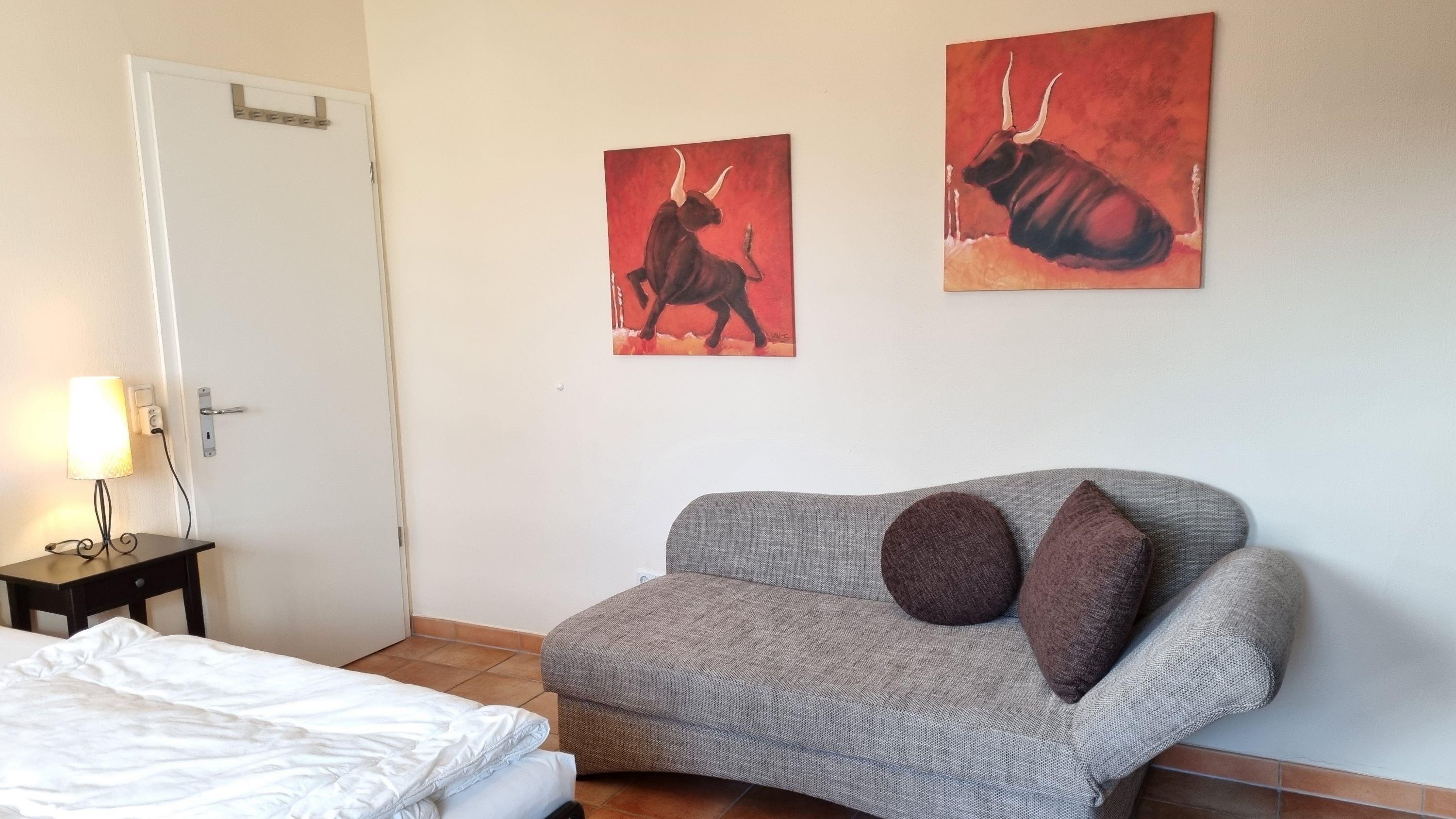 Das Schlafzimmer verfügt über ein Doppelbett und zur Ablage viel Platz in den Kleiderschränken. Zusätzlich befindet sich im Schlafzimmer eine Schlafliege bzw. Sofa.