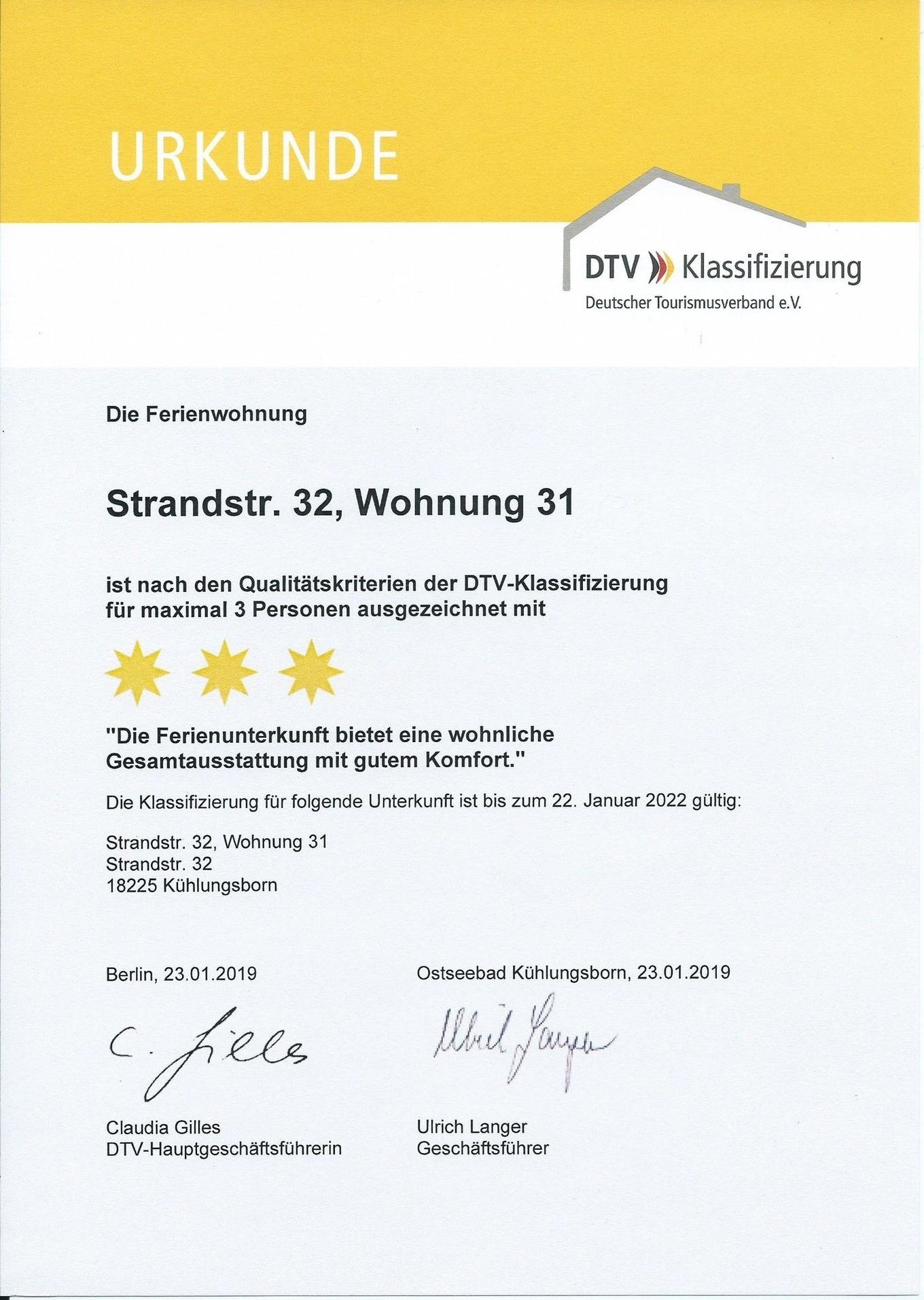 Sie liegt in ruhiger Lage und wurde vom deutschen Tourismusverband e. V. mit drei Sternen ausgezeichnet worden (siehe Zertifikat).