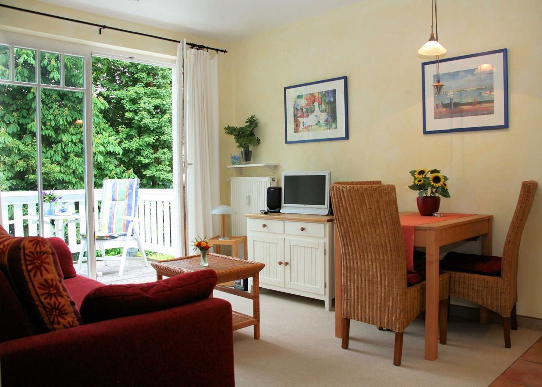 Die Wohnung befindet sich im Haus 2 der Anlage im 1.Obergeschoss,ist ruhig gelegen und für 3 Erwachsene oder 2 Erwachsene und 2 Kleinkindern ( bis 4 Jahren ) ausgestattet.