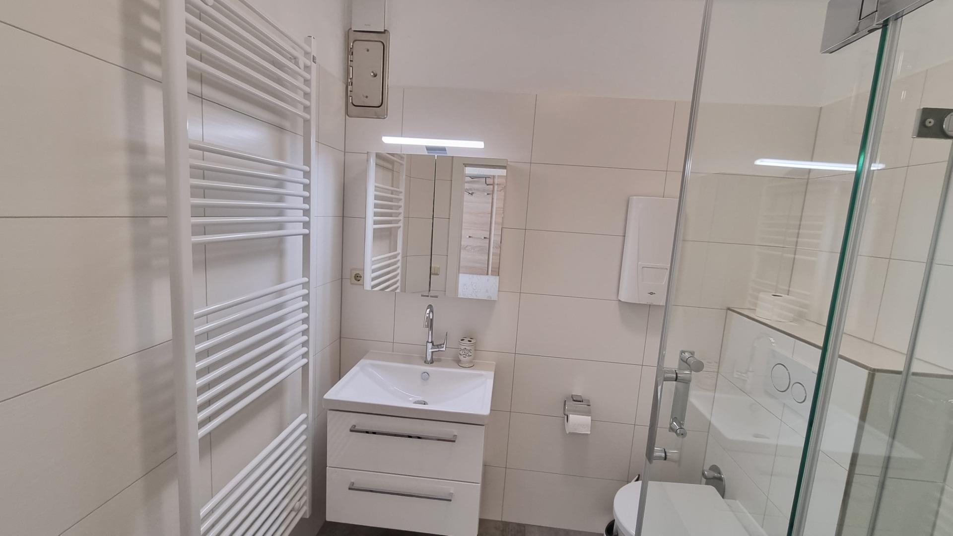 Ein Bad/WC mit Dusche ergänzt die Ferienwohnung.