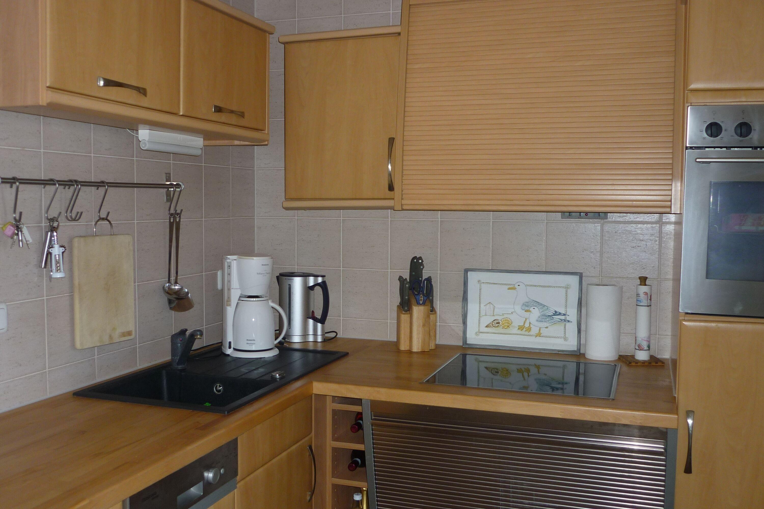 Die Küche ist vollständig ausgestattet, inklusive Backofen für die Zubereitung von Tiefkühlpizza oder Aufbackbrötchen.