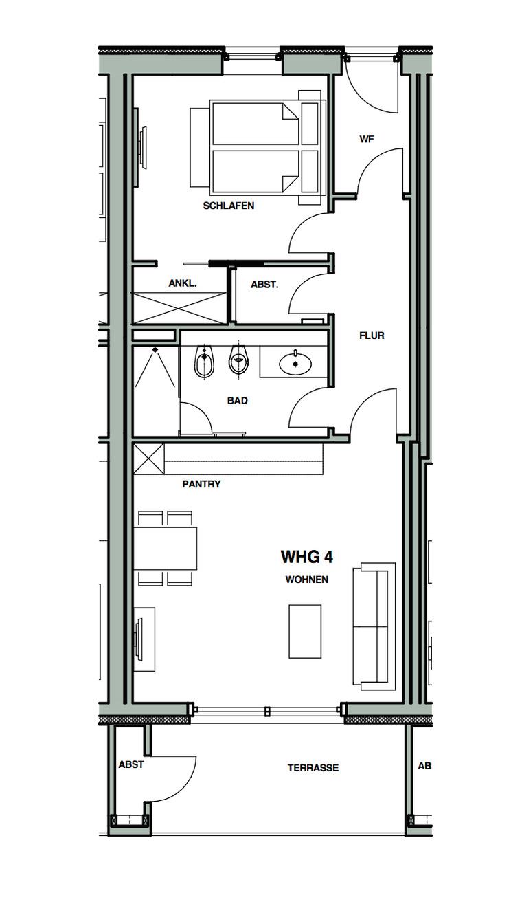 Das moderne 2-Raum-Apartment von 66qm Größe ist stufenlos erreichbar und für 2 Personen geeignet. Es begrüßt Sie ein offener und moderner
