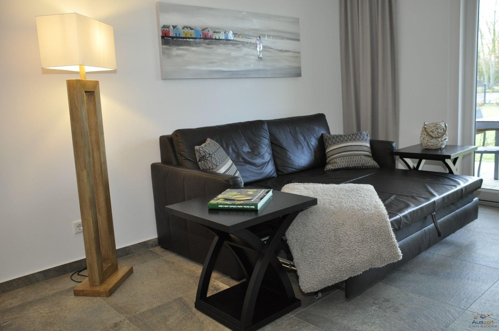 Wohnbereich betreten Sie die große möblierte Terrasse mit Liegewiese und Ostseeblick. Das gemütliche Schlafzimmer ist ausgestattet mit