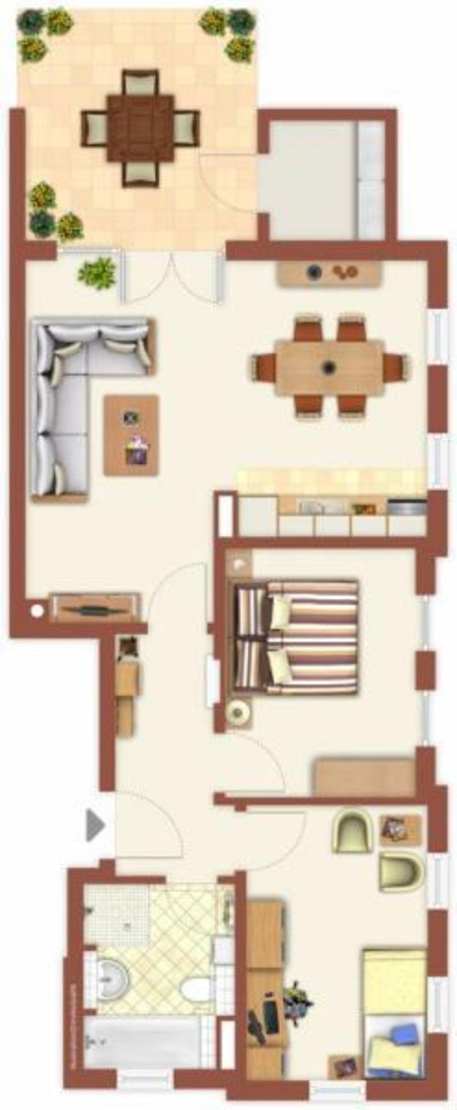 Die niveauvoll möblierte Ferienwohnung befindet sich im Erdgeschoss des 4-Parteien-Hauses "Villa Sophia" und bietet auf 72 m² Platz für bis zu 5 Personen.