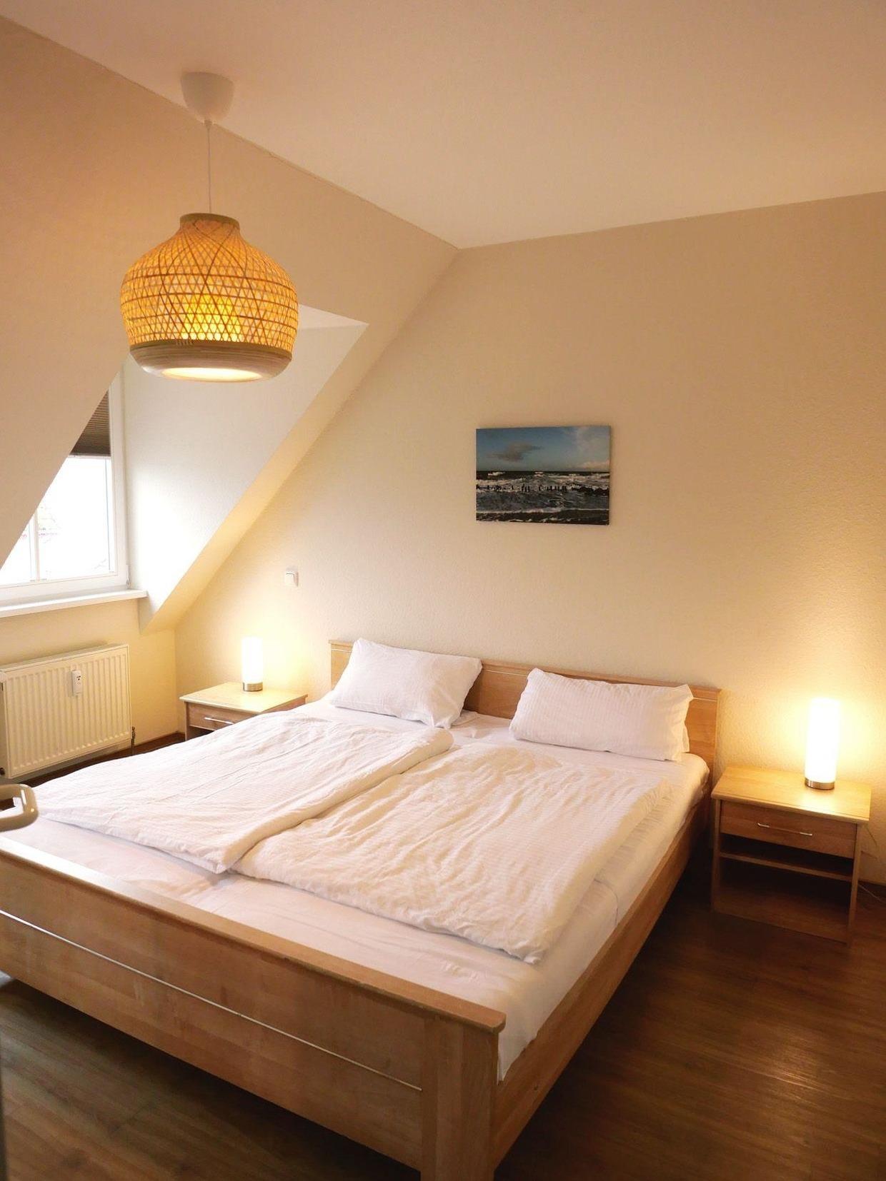 Die beiden sehr geschmackvoll eingerichteten Schlafzimmer verfügen über jeweils ein Doppelbett, wobei im zweiten Schlafzimmer die Betten auch getrennt stellbar sind. Des weiteren steht Ihnen im Wohnzimmer noch eine Schlafcouch zur Verfügung.