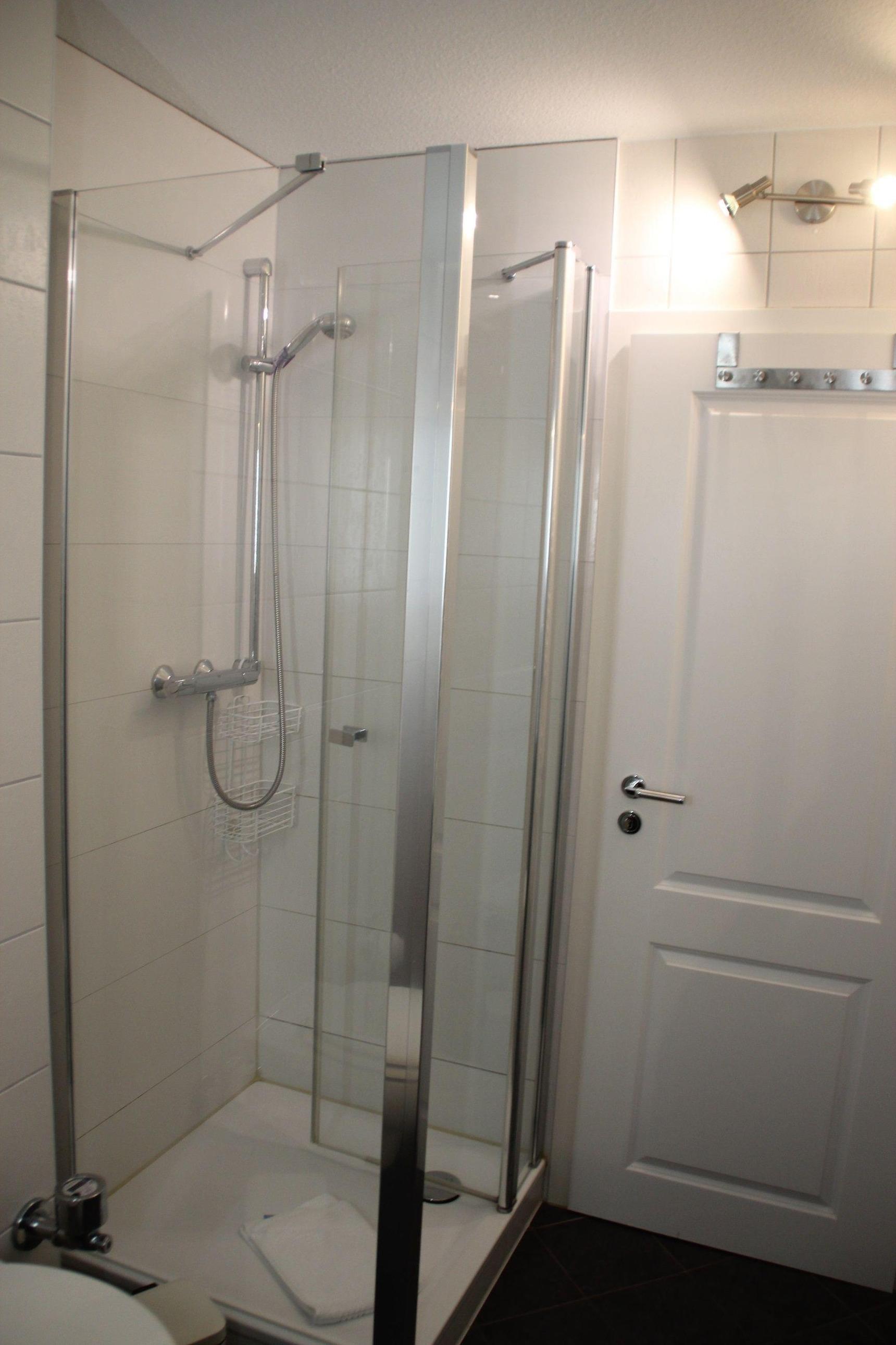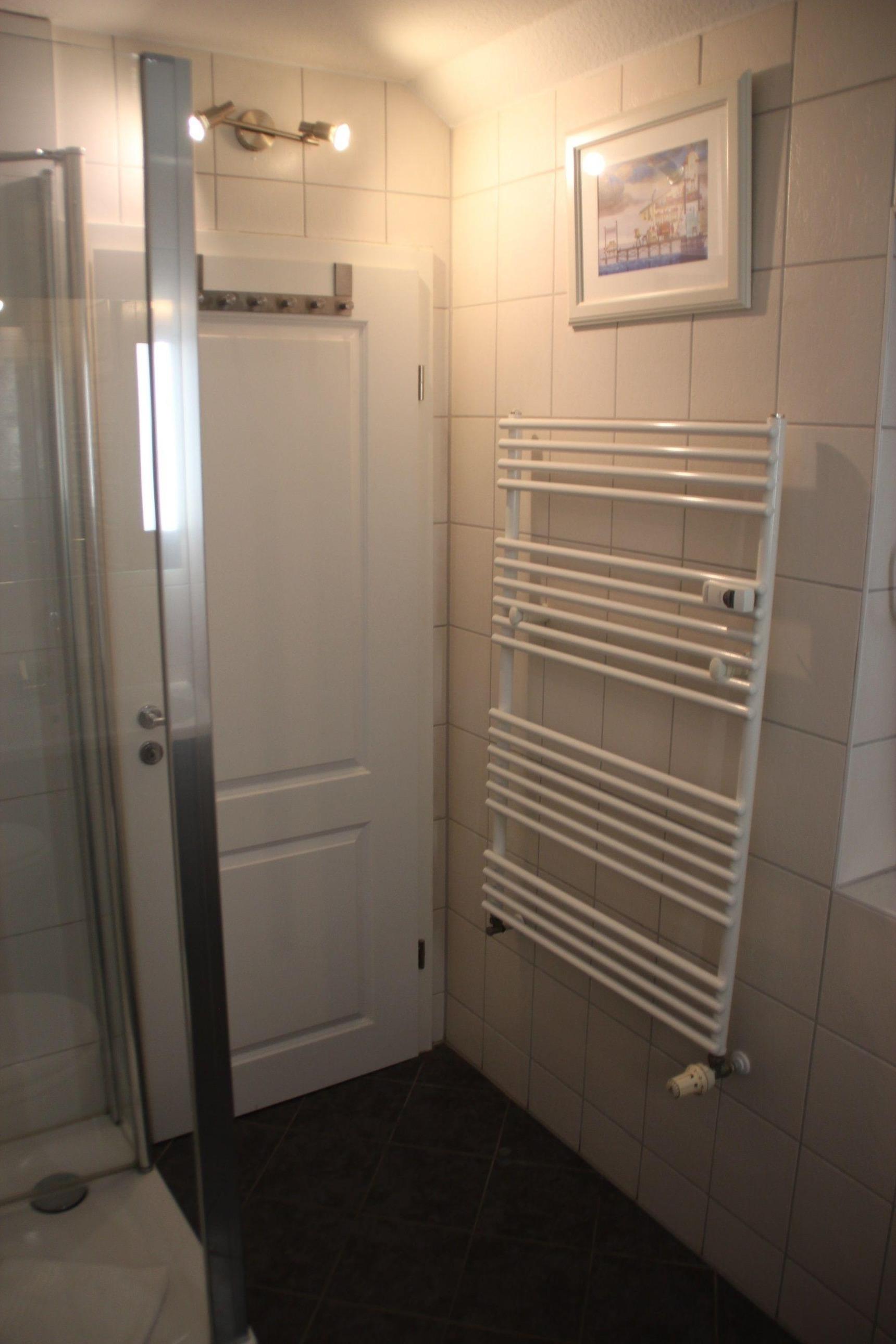 Das mit einem Fenster versehene Bad verfügt über eine Dusche, ein Waschbecken mit Unterschrank sowie einen Spiegelschrank für Ihre Badutensilien, ein WC sowie einen Handtuchheizkörper. Auch auf einen Föhn und einen Kindertritt müssen Sie nicht verzichten.