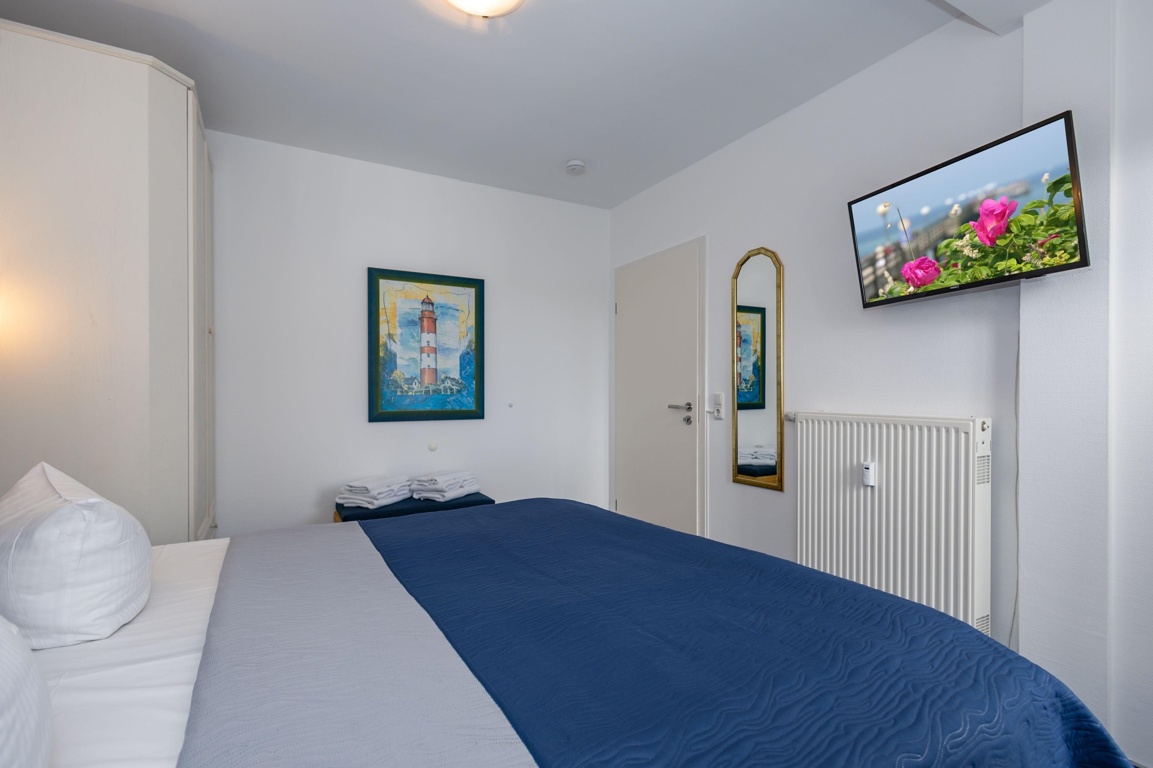 2. Fernsehgerät mit LCD Flachbildschirm im Schlafzimmer. W-LAN, die Zugangsdaten befinden sich in der Wohnung.