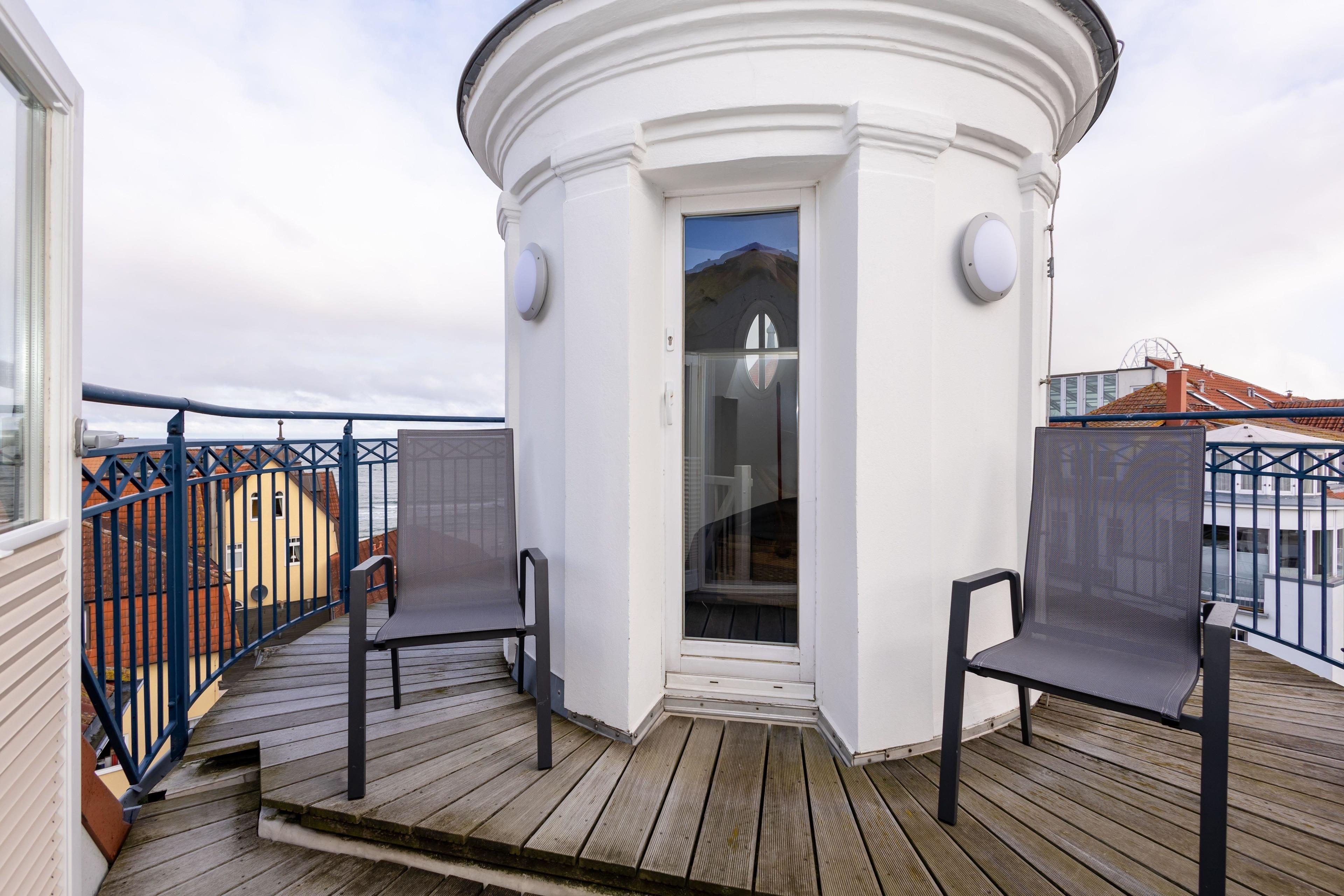 Traumhafte Maisonette-Wohnung in Kühlungsborn-West mit spektakulärer Strand- und Seesicht vom Turmbalkon des Hauses.