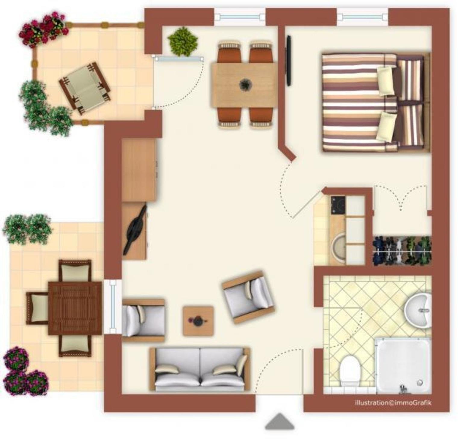 Das gemütliche 2-Zimmer-Apartement im Erdgeschoss bietet Ihnen auf 40 m² alles, was Sie für Ihren Urlaub benötigen und auf nichts verzichten möchten.