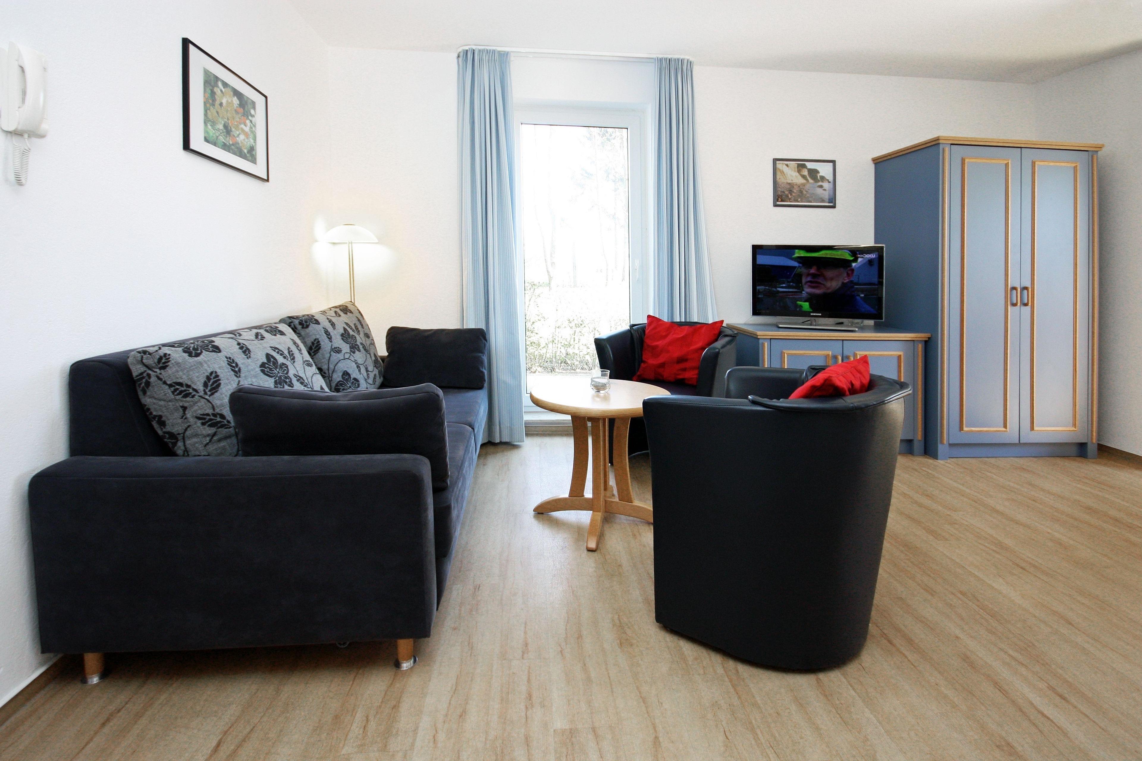Der komfortable Wohnbereich ist mit einer Sofa- und Sesselecke eingerichtet. Hier können Sie sich nach einem ereignisreichen Tag wunderbar erholen.