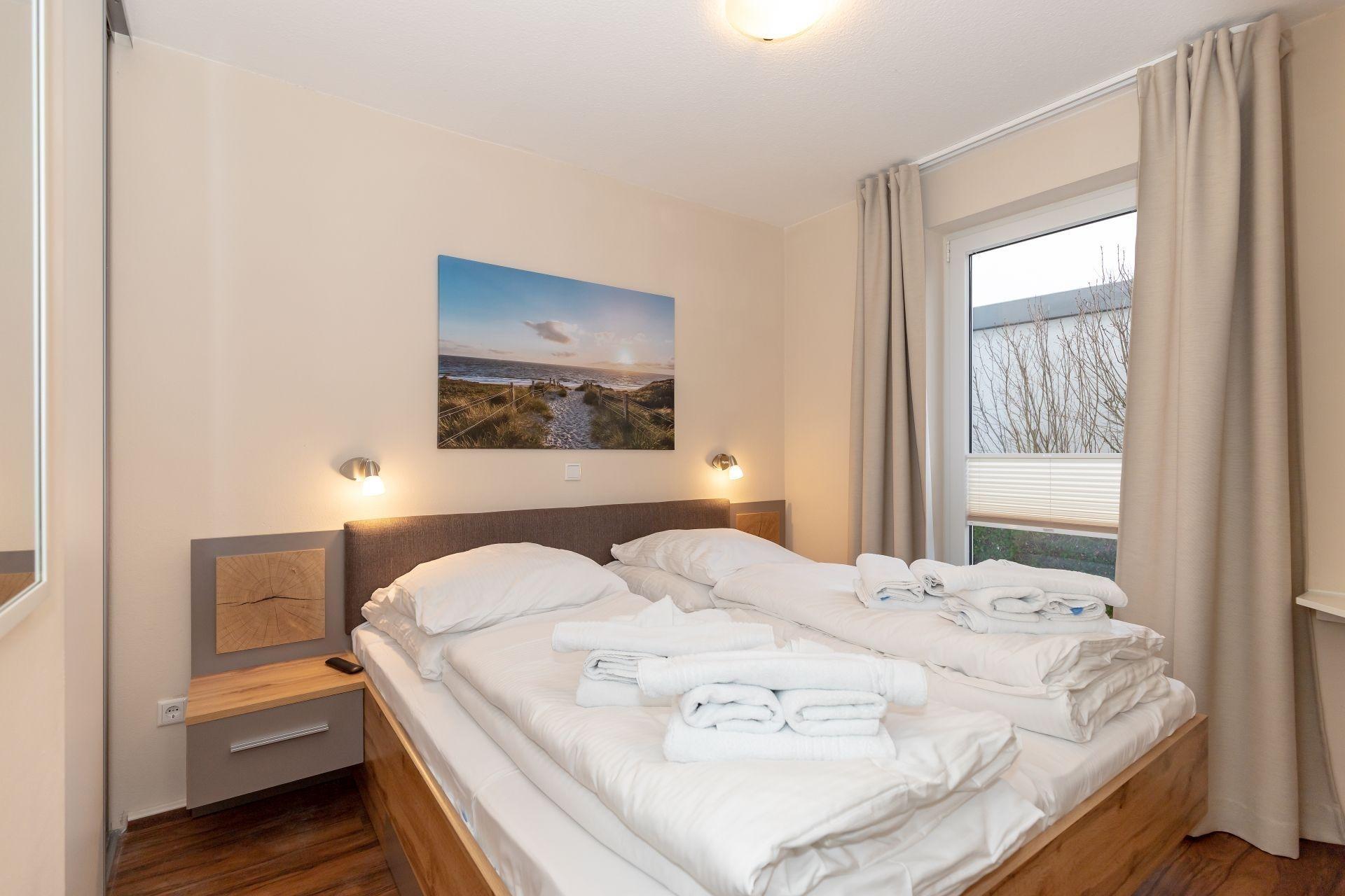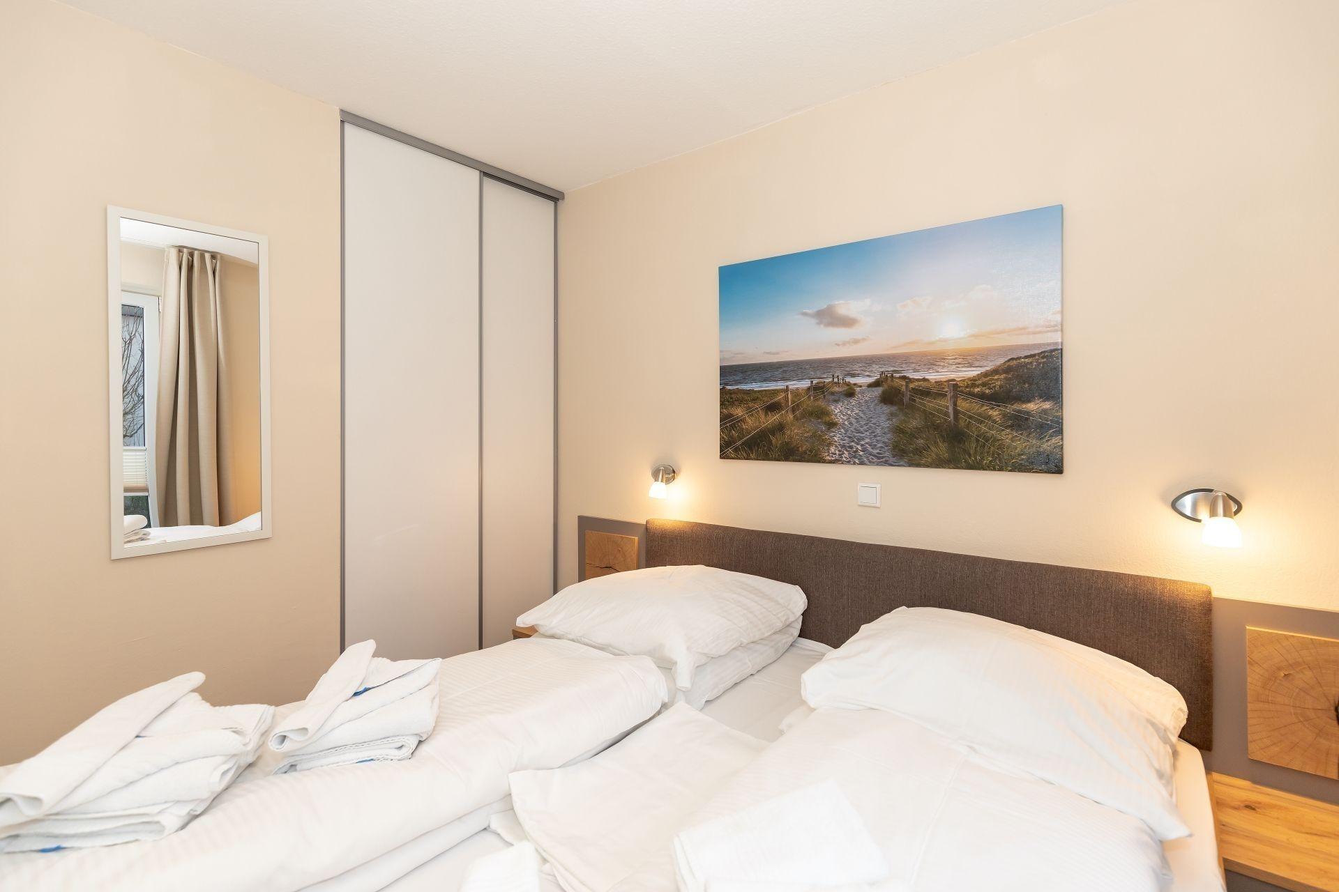 Das separate Schlafzimmer ist mit einem bequemen Doppelbett eingerichtet. Ein erholsamer Schlaf ist garantiert.