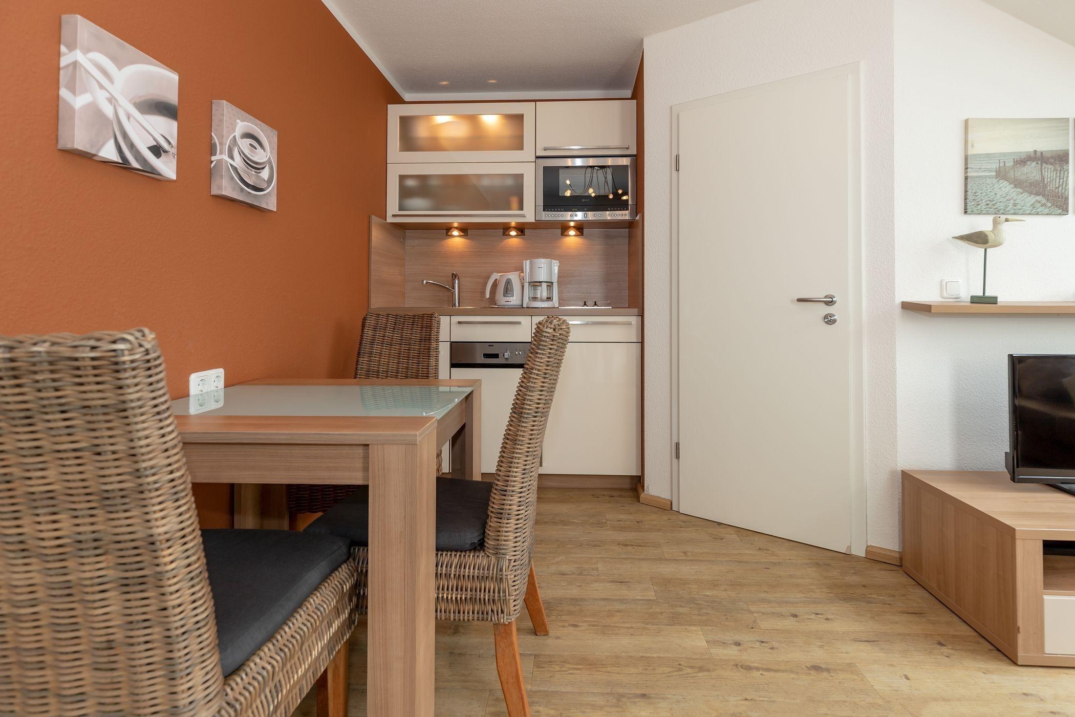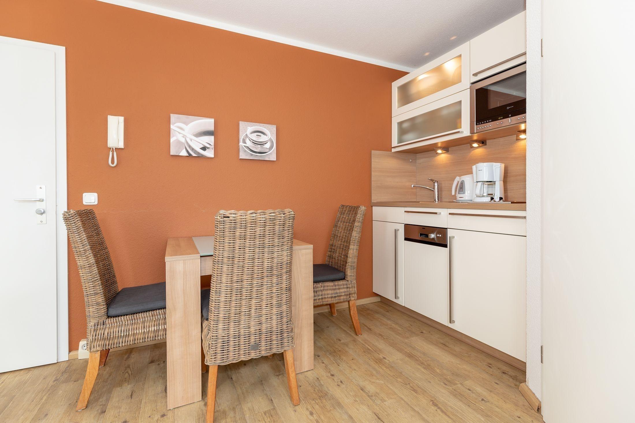Im Küchenbereich steht Ihnen außerdem ein Esstisch für die gemeinsamen Mahlzeiten zur Verfügung.