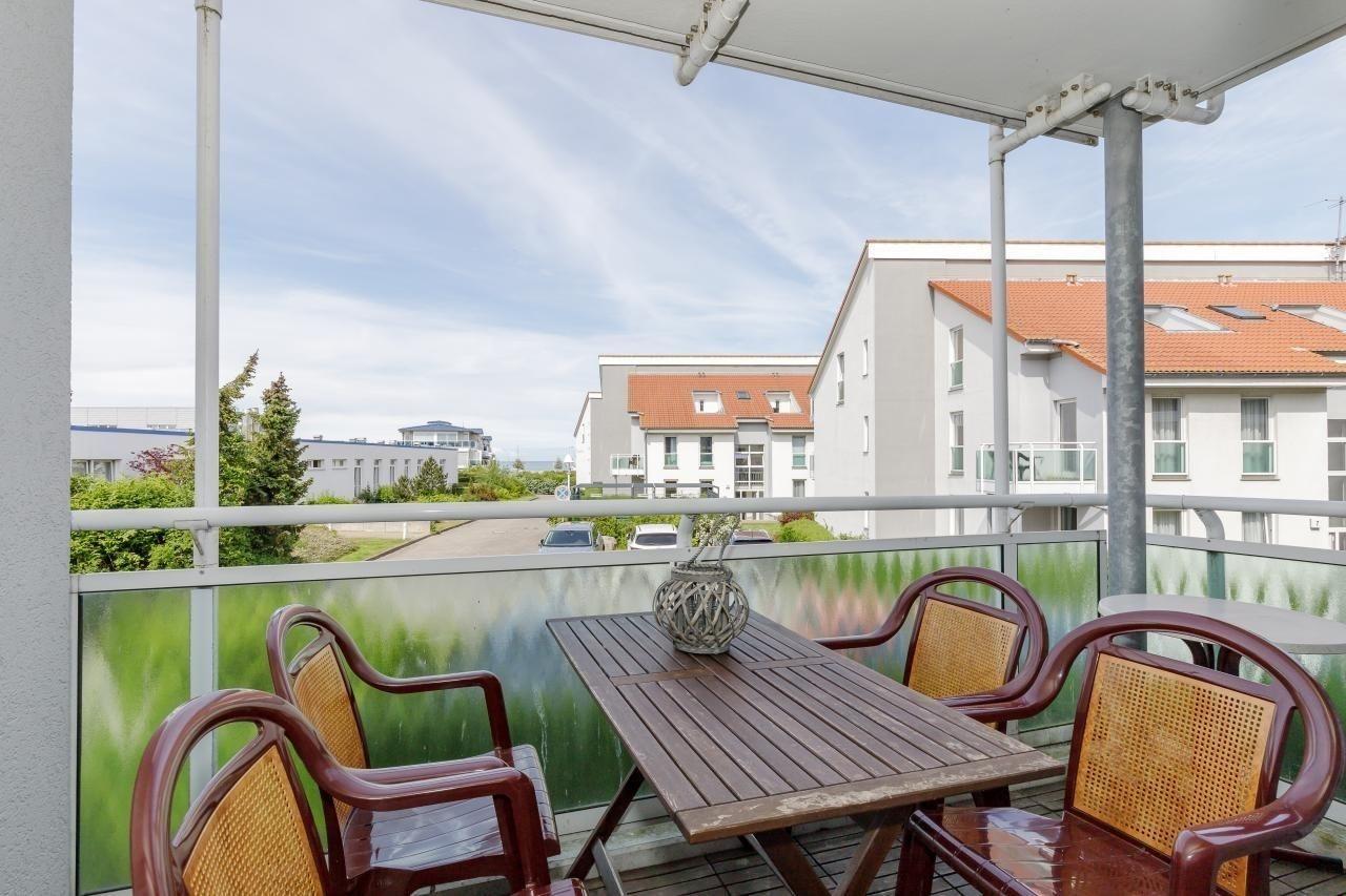 Ein mit Akazienholz ausgelegter Balkon mit schönem Ausblick auf die Ostsee (Nordseite) ist ausgestattet mit einem Tisch und 4 Stühlen und lädt zum gemütlichen Zusammensitzen ein.