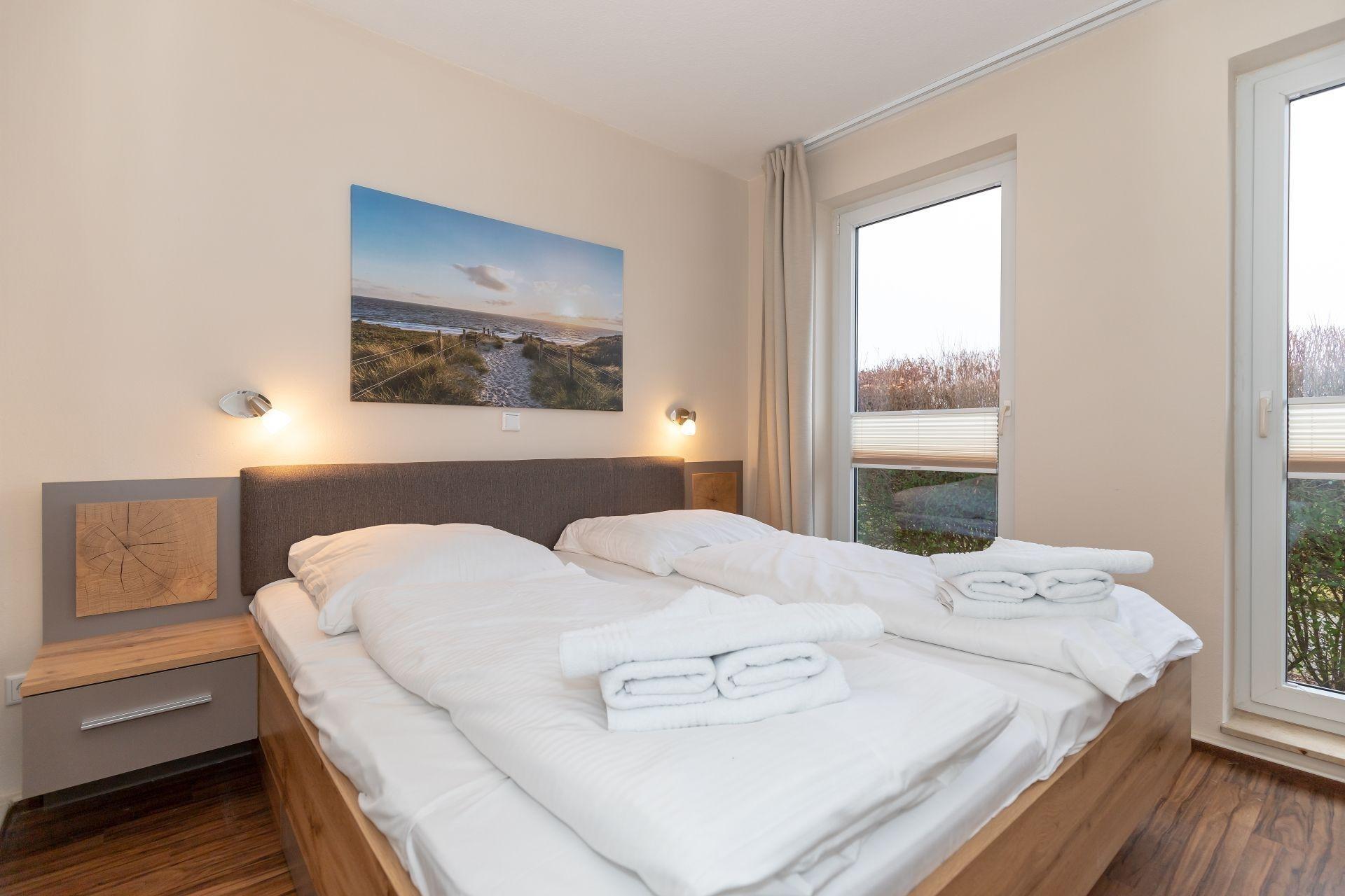 Das separate Schlafzimmer ist mit einem Doppelbett eingerichtet. Ein erholsamer Schlaf ist garantiert.