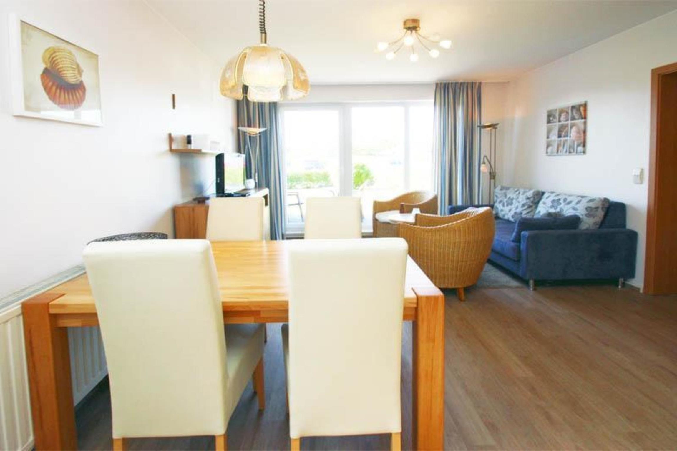 An Ihre Wohnung grenzt eine windgeschützte Terrasse, die zur Südseite ausgerichtet ist. Moderne Gartenmöbel laden zum Sonnenbaden und Verweilen ein. So können Sie gemeinsam am Abend einen ereignisreichen Tag bei einem leckeren Getränk gemütlich ausklingen lassen. Ein hübscher Strandkorb rundet die Harmonie in diesem Außenbereich ab.