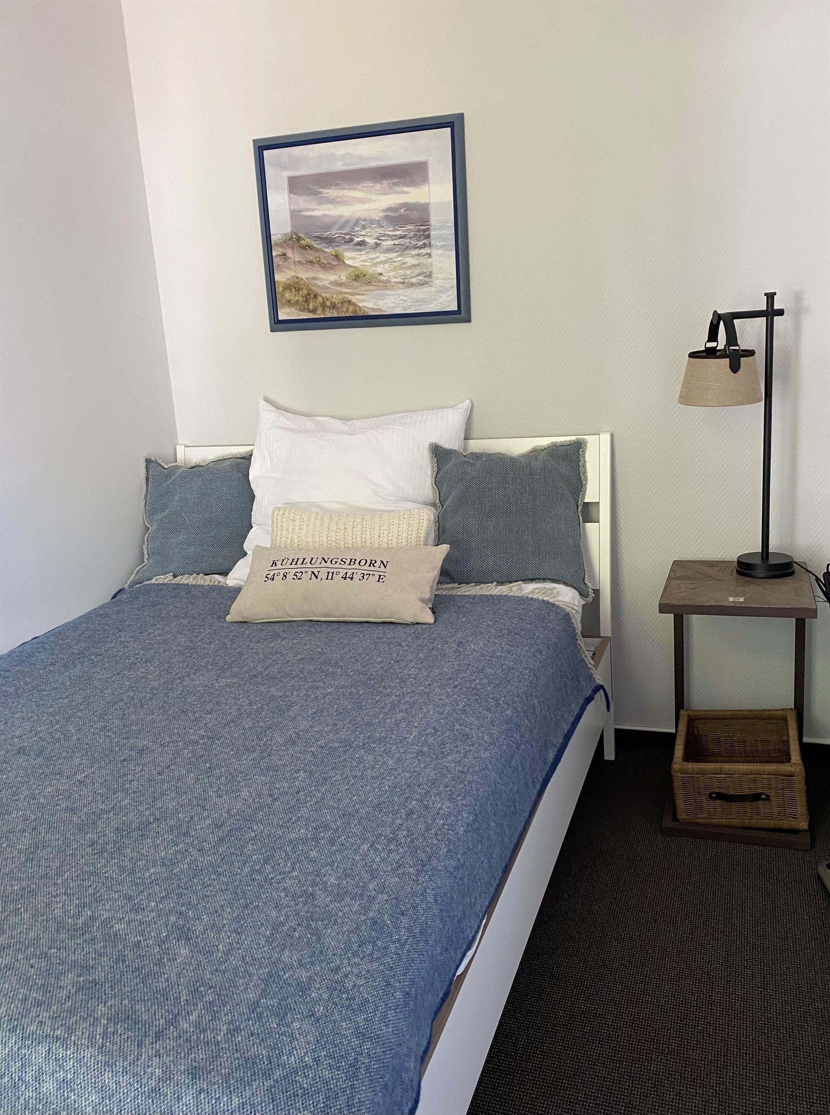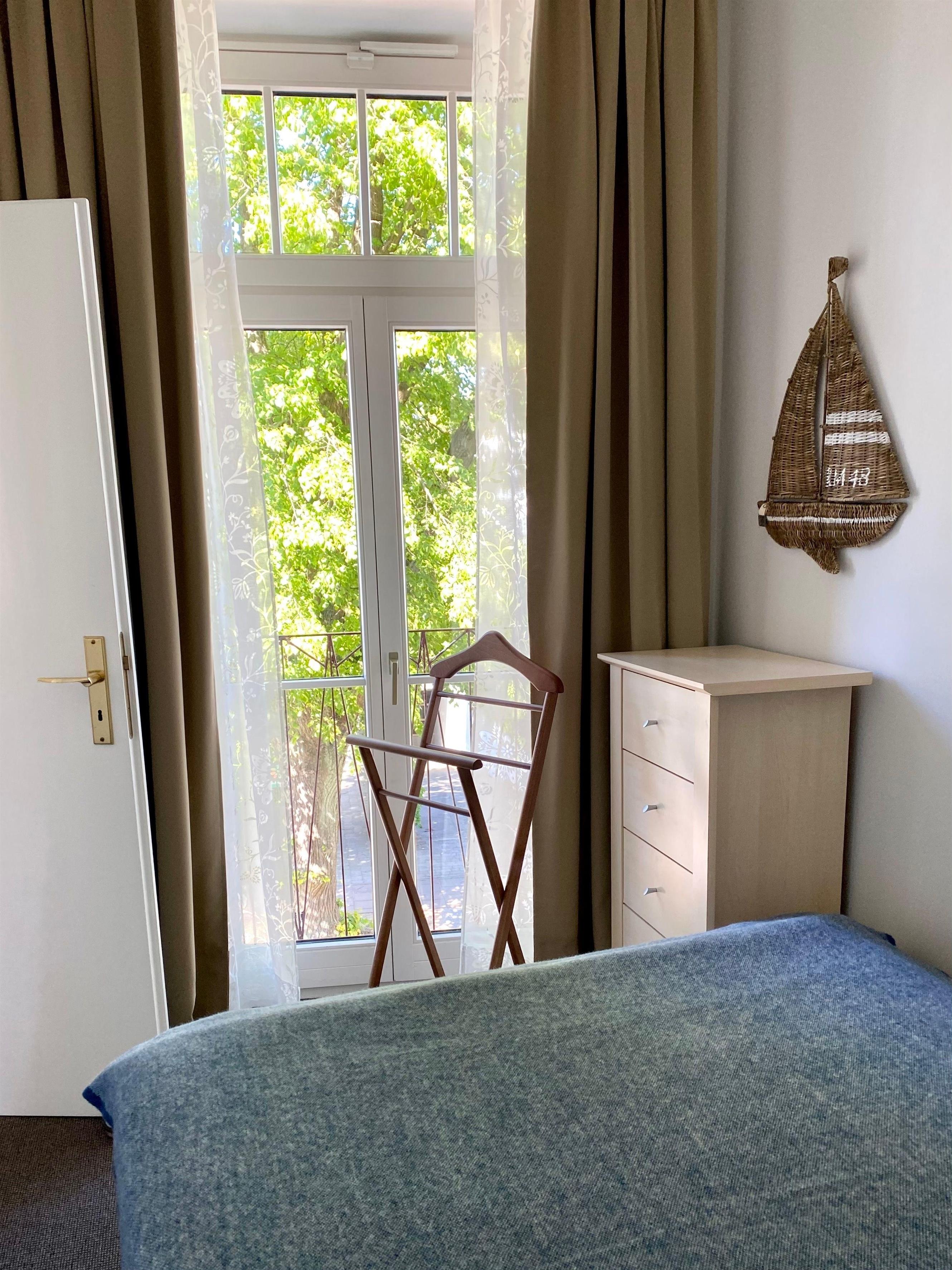 Es steht ein kleines, aber sehr schönes zweites Schlafzimmer zur Verfügung mit bequemem 1,40 x 2,00 m-Bett und bodentiefem Fenster. Ideal für Paare, die ein separates Schlafzimmer wünschen.