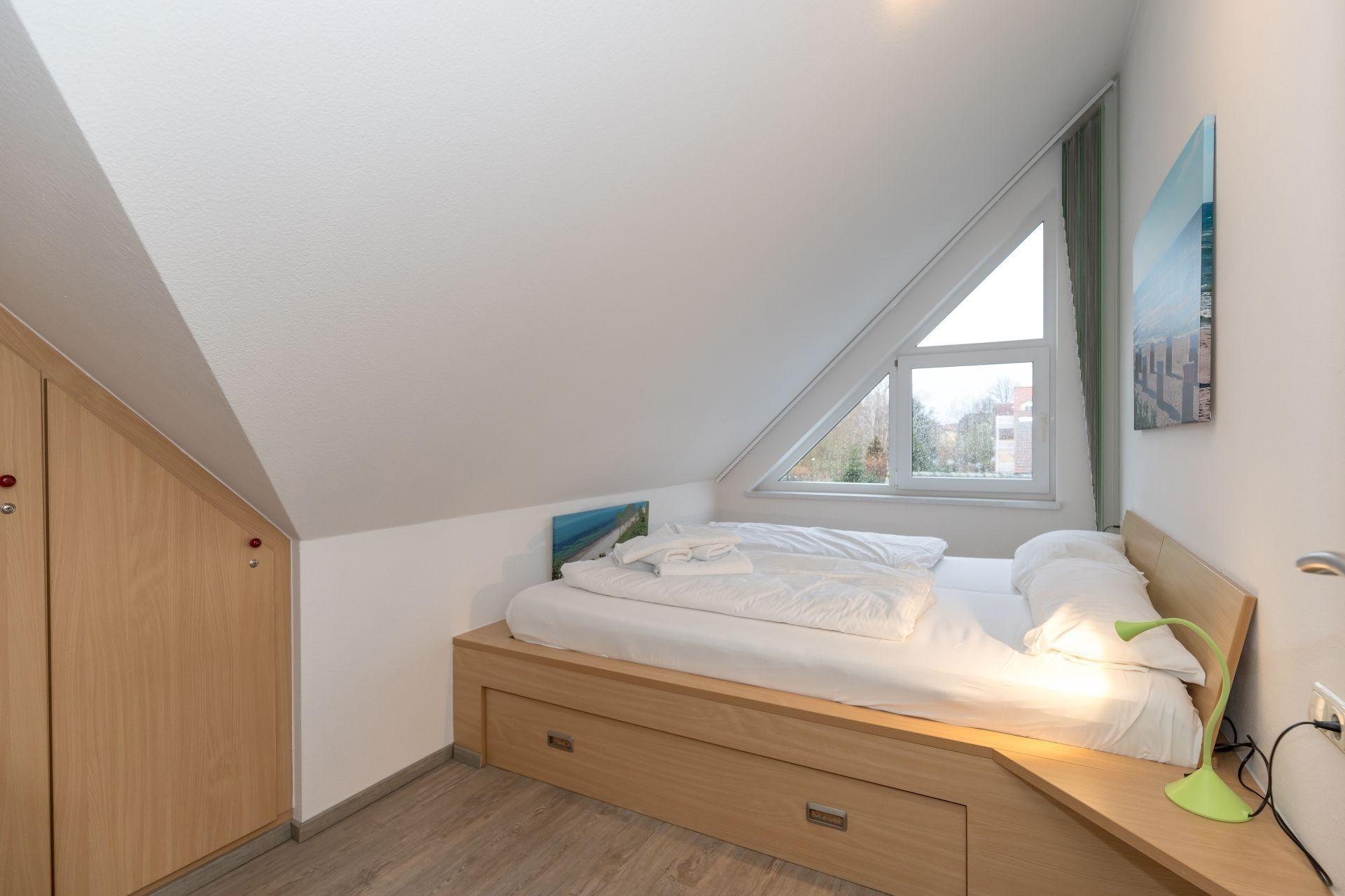 Das Schlafzimmer ist mit einem komfortablen Doppelbett (1,80 x 2,00 m / 2 Matratzen) eingerichtet, ein erholsamer Schlaf nach einem erlebnisreichen Tag ist garantiert. Ein geräumiger Kleiderschrank sowie der Bettkasten unter dem Doppelbett halten ausreichend Stauraum für Ihre Urlaubsgarderobe bereit. Auch für das Aufstellen eines Kinderreisebettes ist ausreichend Platz vorhanden.