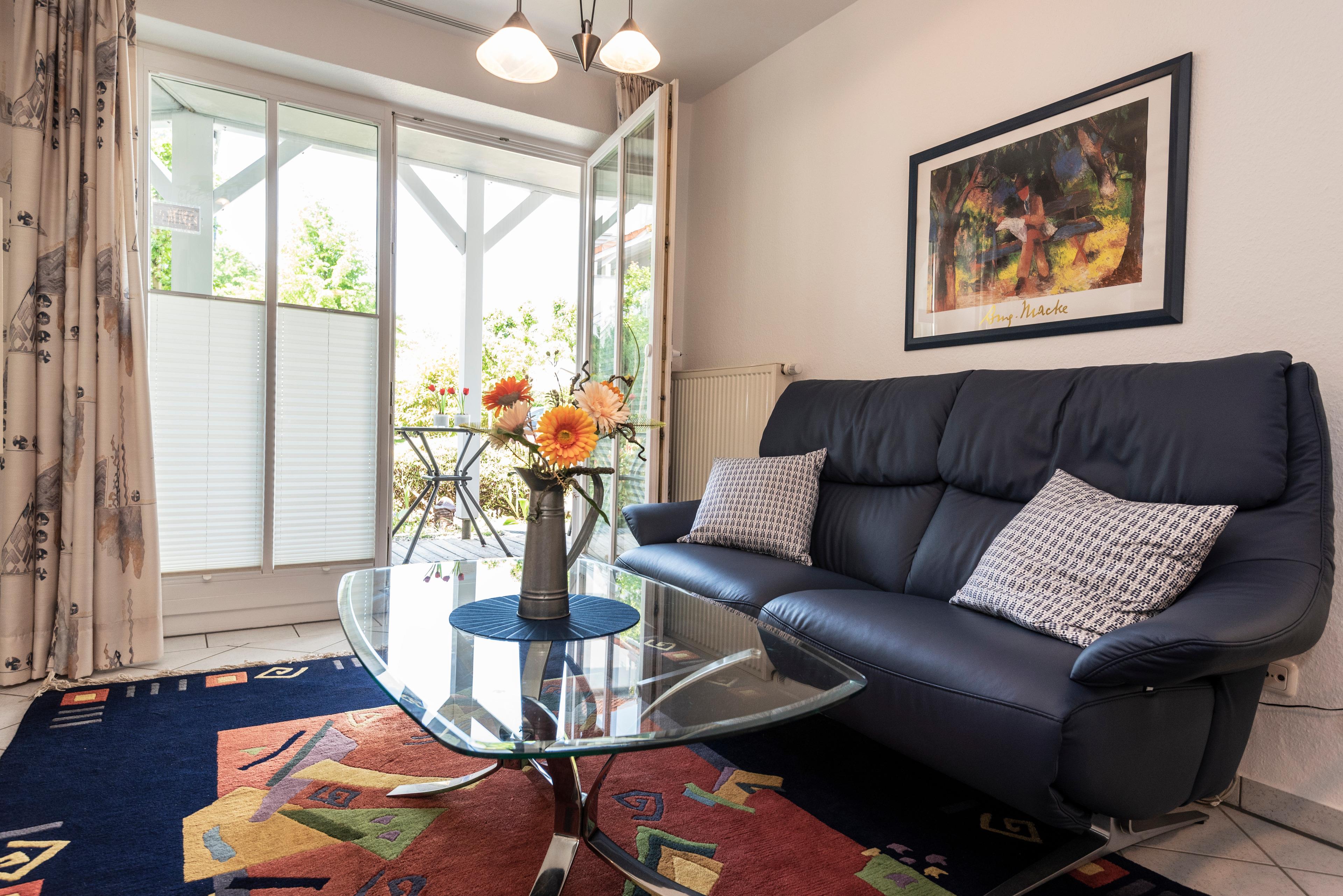 Komfortable EG- Ferienwohnung mit überdachter Terrasse, schnellem WLan, eigenem Parkplatz und abschließbarem Kellerraum für 2 Räder. Sauna zur Alleinnutzung in der Anlage vorhanden.