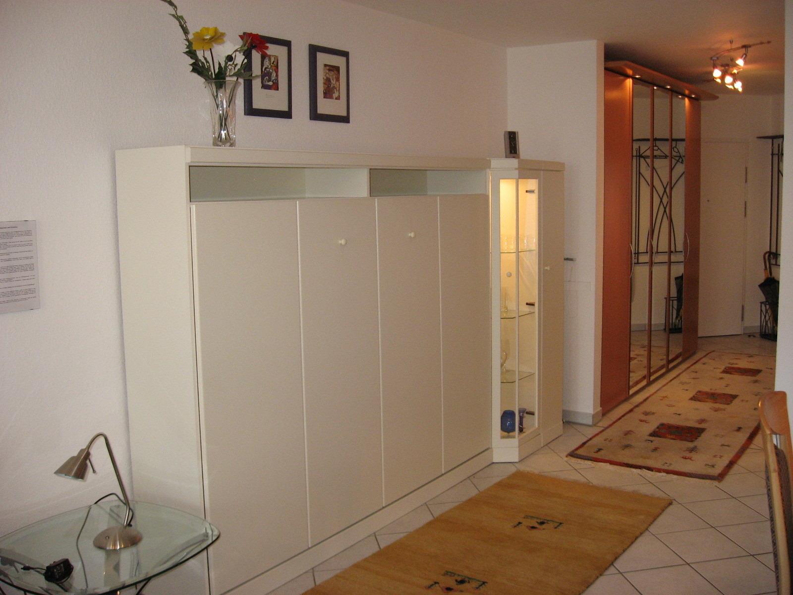 Ein Schrankbett (1,40 x 1,90 m) mit durchgehender, guter Matratze ist vorhanden