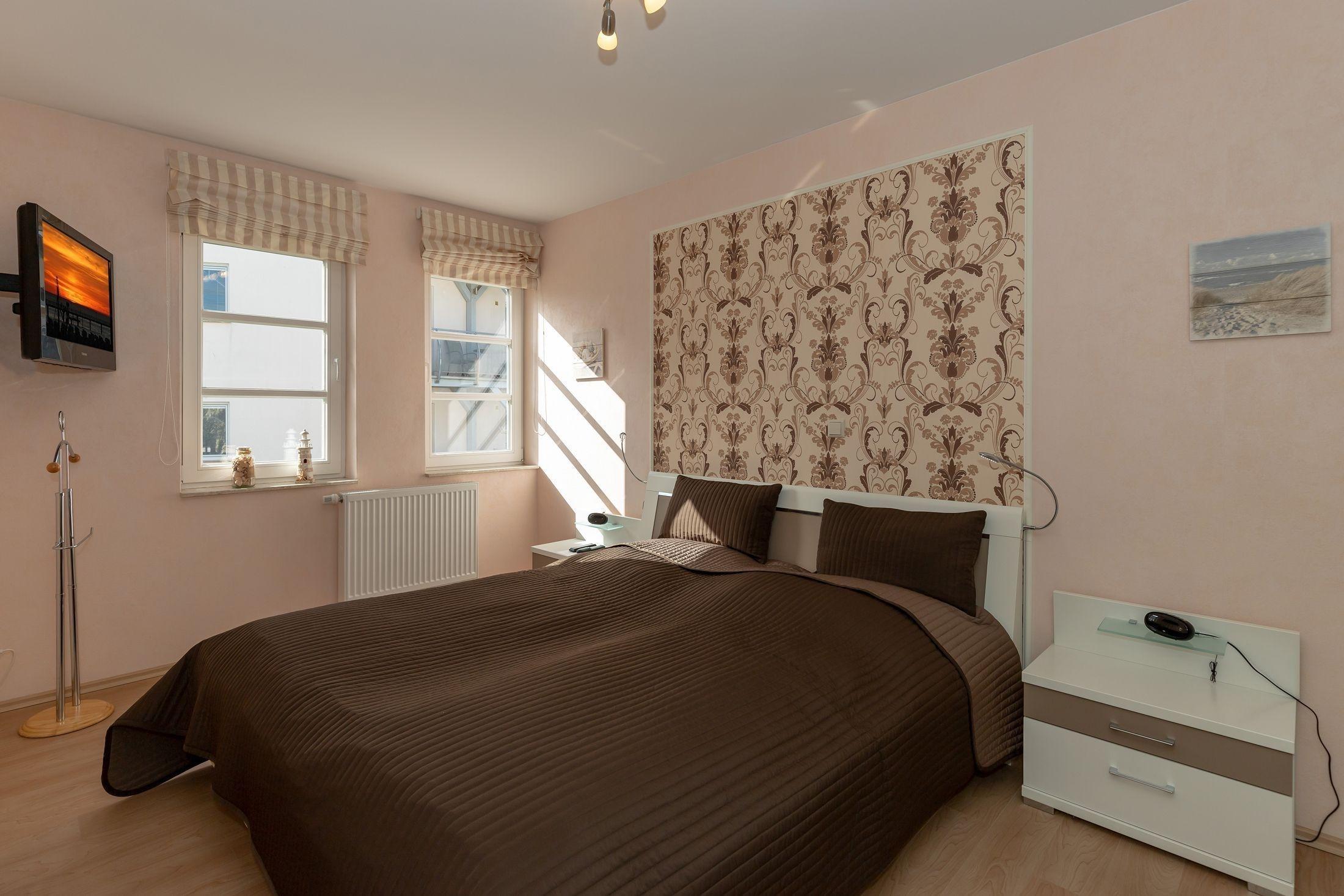 Das Schlafzimmer ist mit einem Doppelbett und einem großen Kleiderschrank ausgestattet, in dem Sie genügend Platz für Ihre Urlaubsgarderobe finden. Mit einem weiteren Fernseher können Sie Ihre Lieblingssendungen auch vom Bett aus anschauen.