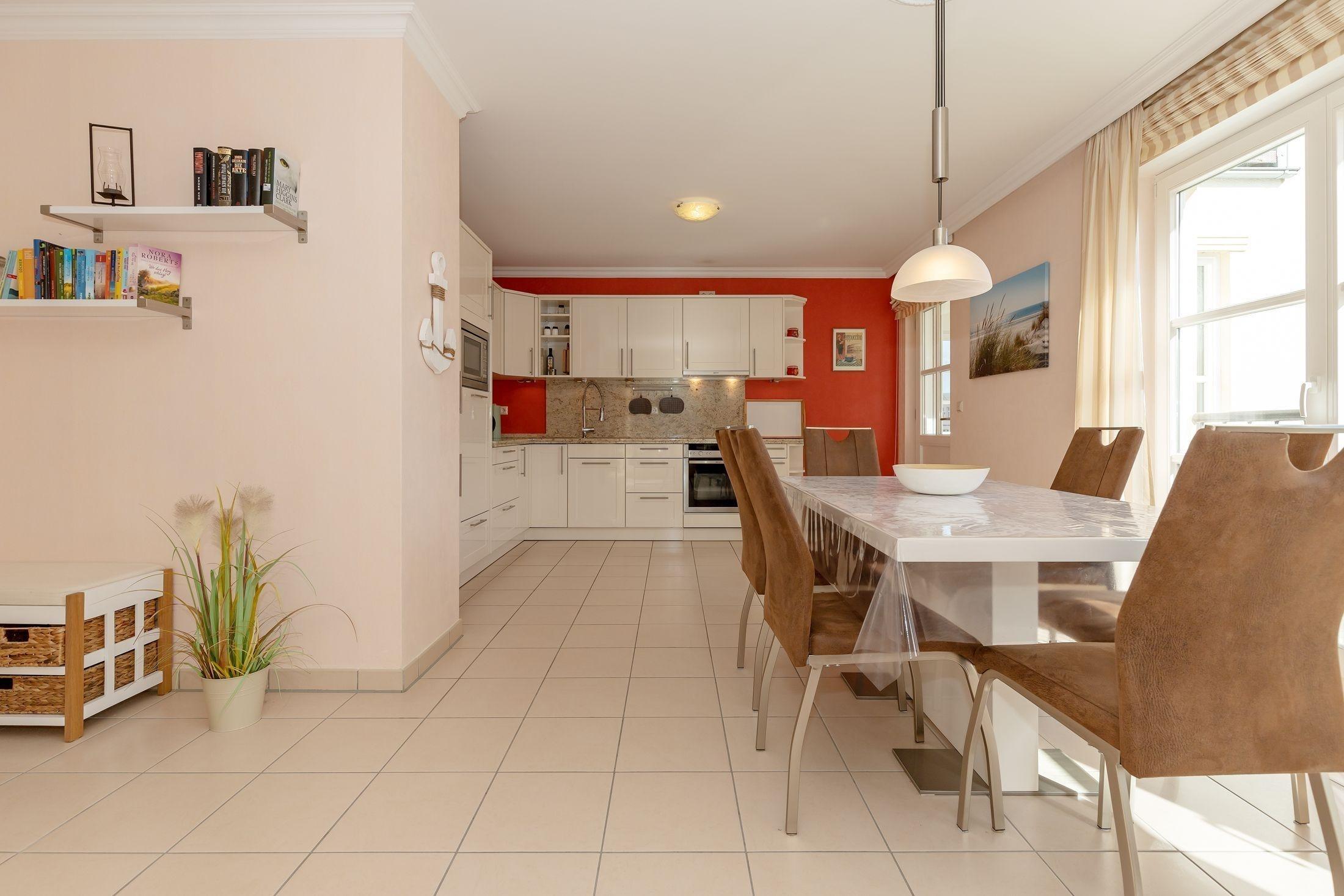 Die Küche grenzt an den Wohnbereich und bietet einem all das, was man für einen vollkommenen Urlaub benötigt: Geschirrspüler, Ceranfeld, Backofen, Mikrowelle, Toaster, Kaffeemaschine, Wasserkocher und natürlich genügend Geschirr und Besteck....