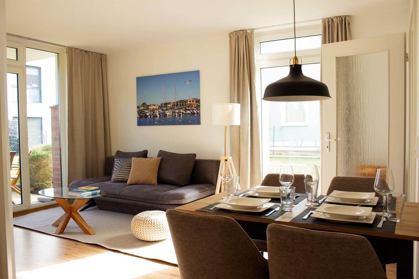 Die Unterkunft ist als Nicht-Raucher-Unterkunft ausgewiesen und familienfreundlich gestaltet, sodass auch Kinder willkommen sind. Im offen gestalteten Wohnzimmer erwartet Sie eine gemütliche Sofaecke, die zu gemeinsamen Stunden einlädt. Die moderne Entertainment-Ausstattung umfasst zwei Kabel-TVs mit einer Bilddiagonale von jeweils über 55 Zoll, so dass auch bei schlechterem Wetter abwechslungsreiche Unterhaltung geboten ist. WLAN steht Ihnen selbstverständlich zur Verfügung und ermöglicht flexibles Arbeiten oder das Streamen Ihrer Lieblingsinhalte.