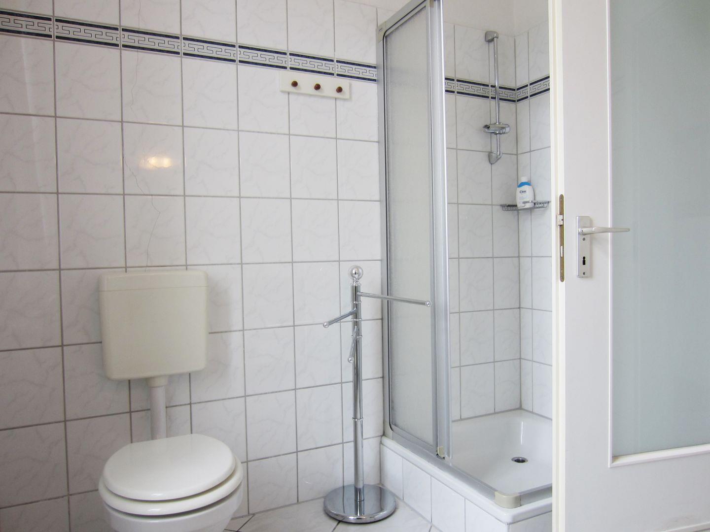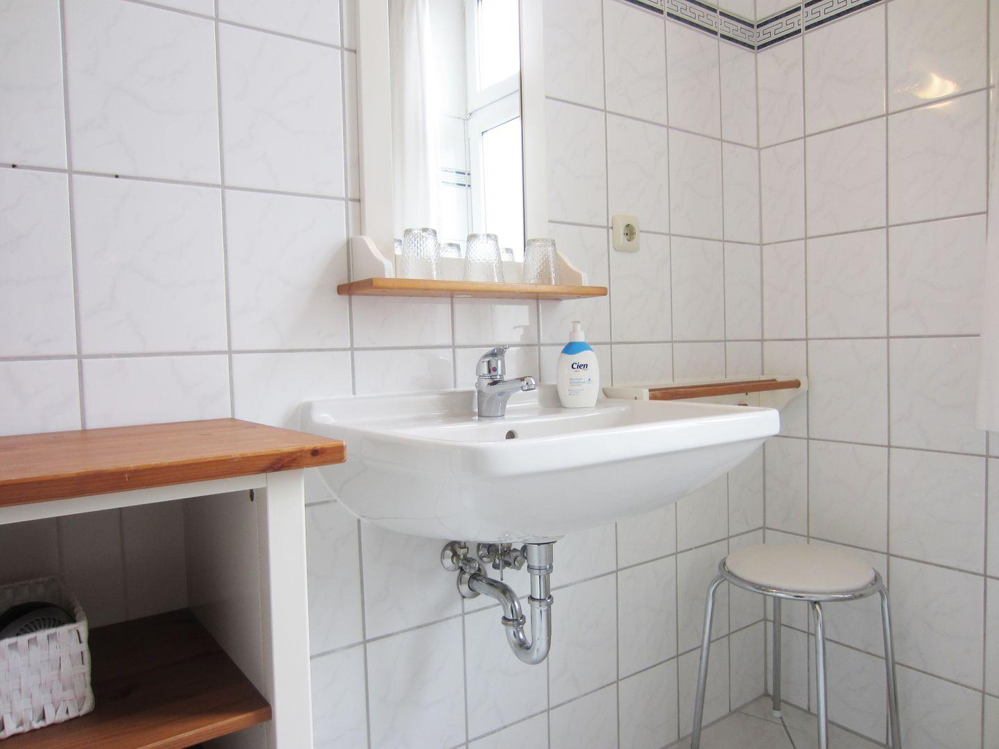 Das Badezimmer verfügt über eine praktische Dusche, Waschbecken, Spiegel, WC sowie ein Fenster. Hier sorgt eine Heizung für Wohlbefinden auch an kühleren Tagen, ebenso wie im Rest der Unterkunft.