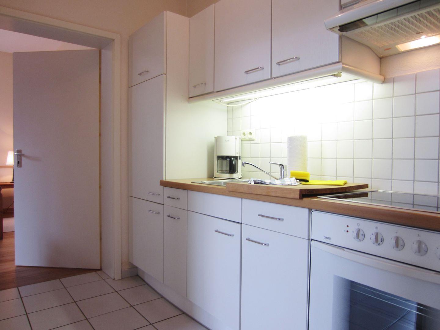 Die zum Wohnraum offene Kochnische ist für Selbstversorger gut ausgestattet. Hier finden Sie einen 4-Platten-Herd mit Elektroanschluss sowie einen Backofen, einen Kühlschrank, eine Kaffeemaschine, einen Wasserkocher und weitere Küchenutensilien wie Töpfe, Geschirr, Besteck, Toaster und Geschirrhandtücher. So können Sie Ihre Lieblingsgerichte ganz nach Ihrem Geschmack zubereiten.
