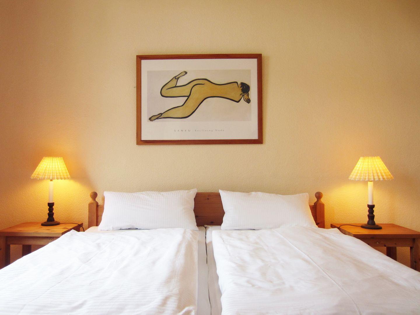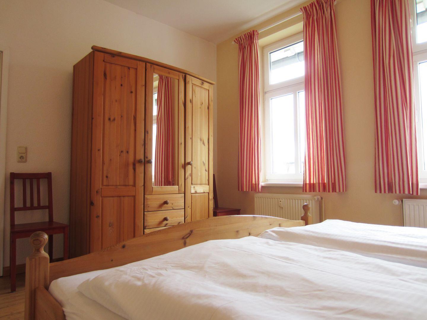 Das Schlafzimmer hat ein gemütliches Doppelbett, Kinderreisebett (ohne Bettzeug und Matratze) und einen geräumigen Schrank.