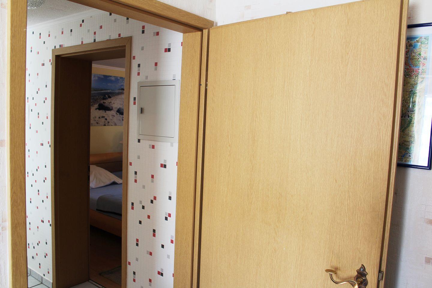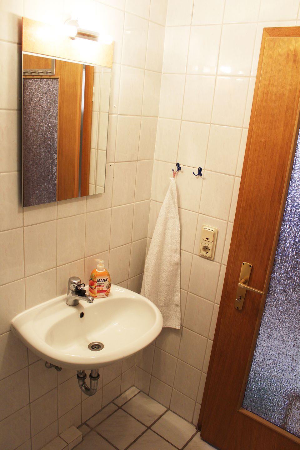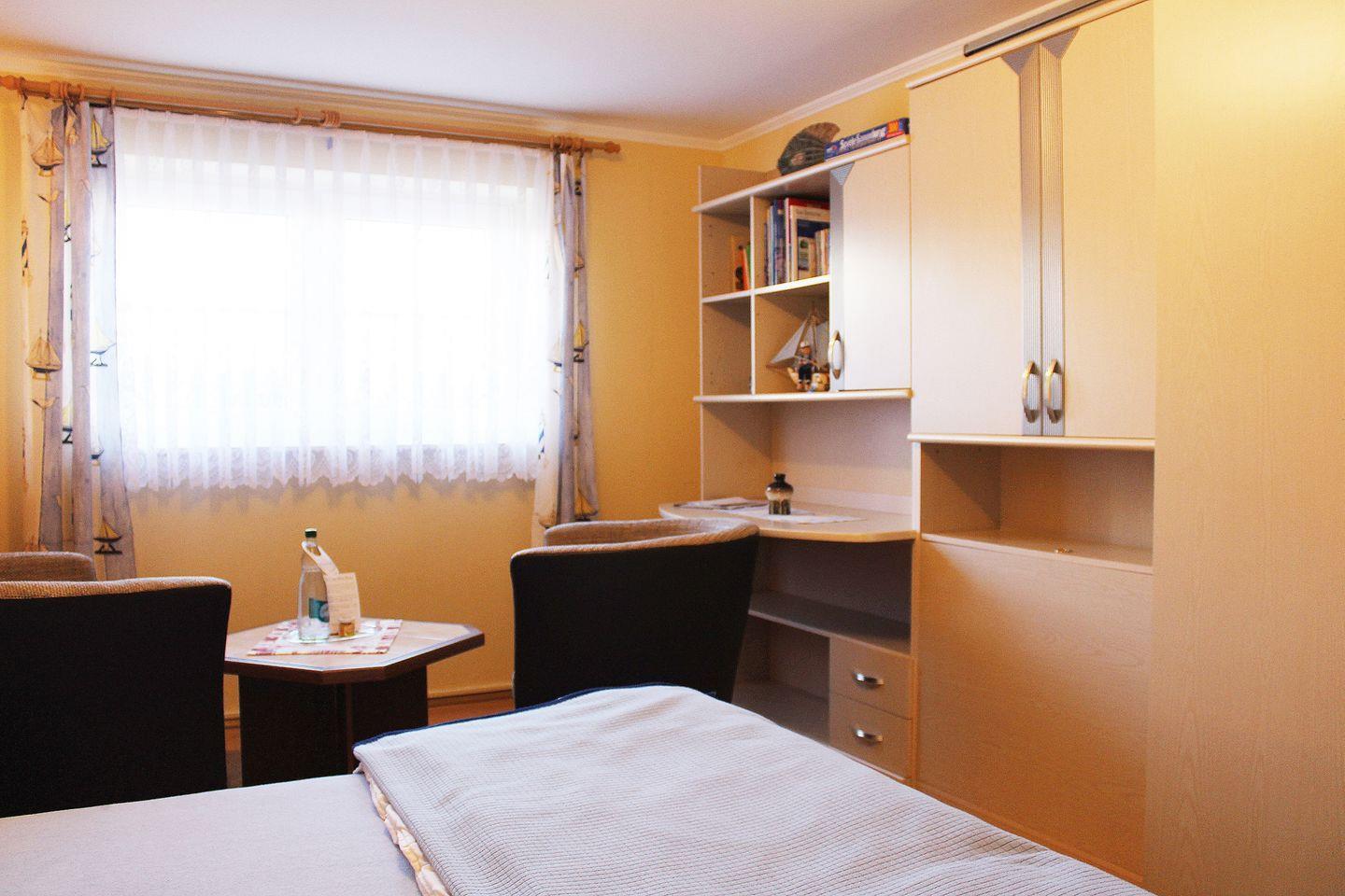 Ferienwohnung mit separatem Eingang über den Garten. Es gibt einen kombinierten Wohn- und Schlafraum mit gemütlichem Doppelbett, TV und Kleiderschrank, ein Pantry-Küche mit einer Doppelherdplatte, Kühlschrank mit Gefrierfach, Wasserkocher, Toaster ist ebenfalls vorhanden. Das Bad verfügt über eine Dusche und ein WC. Es gibt eine Sitzecke im Garten Richtung Osten, wo man bis zum frühen Nachmittag Sonne hat. Grillen ist erlaubt. Die komplette Wohnung verfügt über eine Fußbodenheizung. Es gibt ebenfalls ein Carport, sowie eine E-Auto Ladestation.