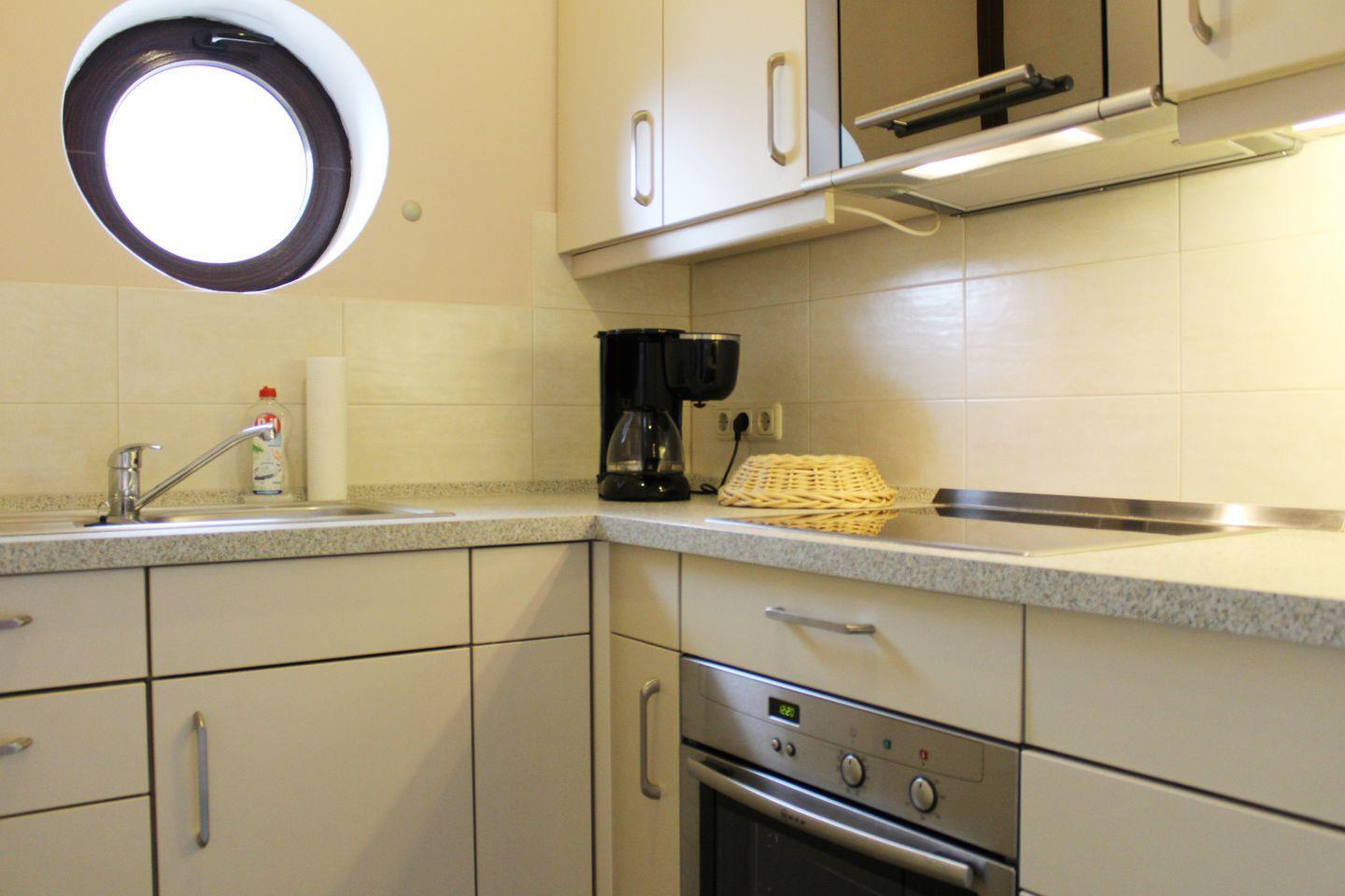 In der modernen und vollständig ausgestatteten, geschlossenen Küche finden Sie neben einem Ceranherd auch Backofen, Mikrowelle, Spülmaschine, Kühlschrank mit Gefrierfach, Kaffeemaschine, Wasserkocher, Toaster sowie sämtliche notwendigen Küchenutensilien, Geschirr und Besteck. Ein Esstisch im gemütlichen Essbereich lädt zu gemeinsamen Mahlzeiten ein. Die Unterkunft ist eine Nichtraucherwohnung und verfügt über eine Zentralheizung, sodass Sie ganzjährig angenehme Temperaturen erwarten dürfen.