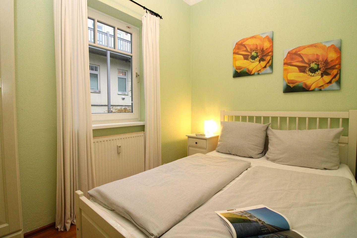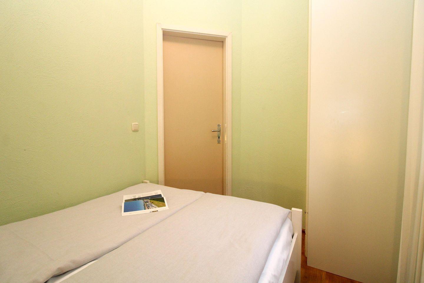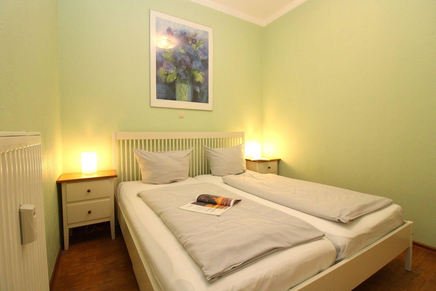 Das separate und zusätzliche 2. Schlafzimmer verfügt ebenfalls über ein bequemes Doppelbett (140 cm x 200 cm), einen Nachttisch mit Nachttischlampen sowie einen Kleiderschrank.