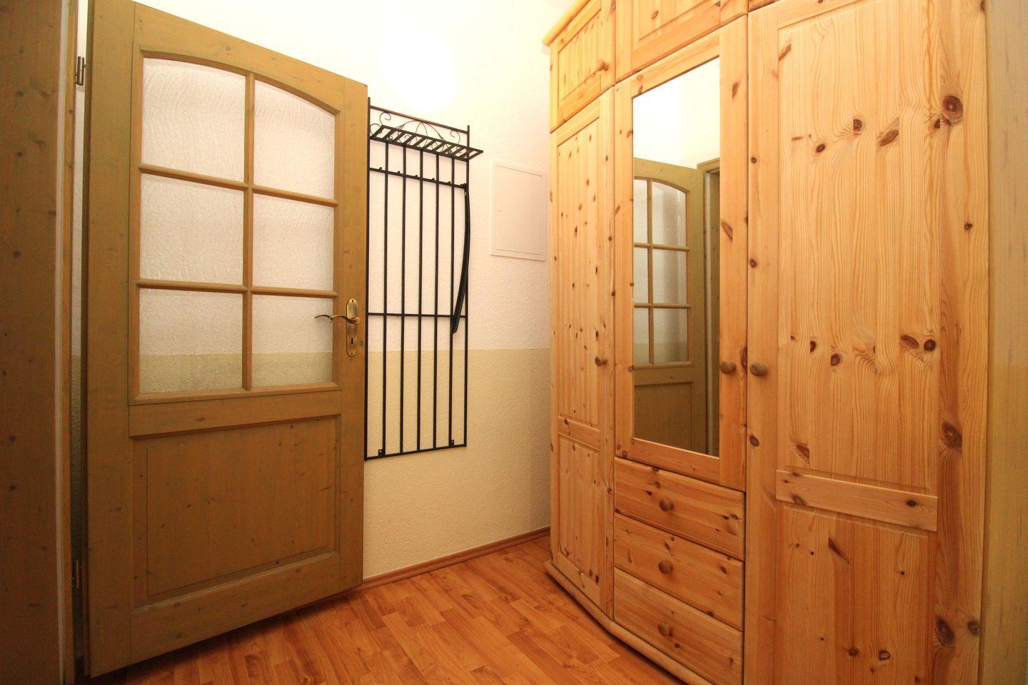 Ihre Schuhe und Jacken können Sie an der Garderobe mit Schrank und Spiegel im Eingangsbereich der Wohnung unterbringen.