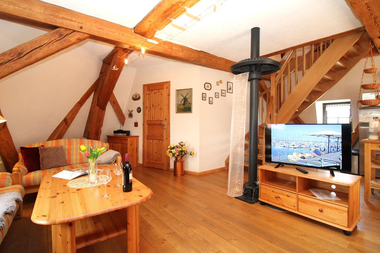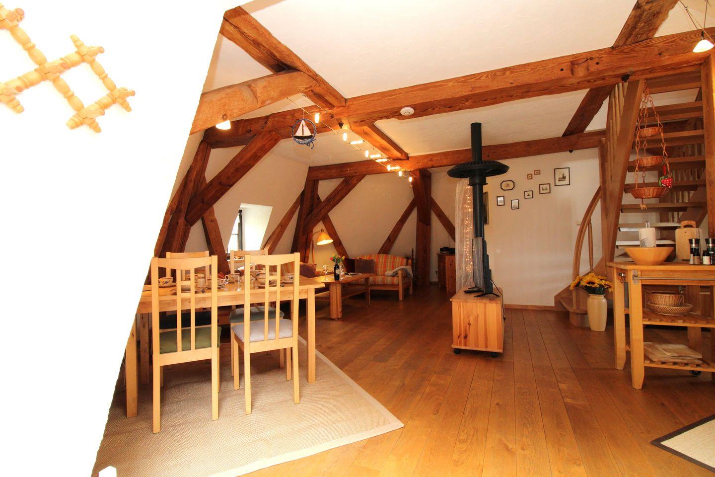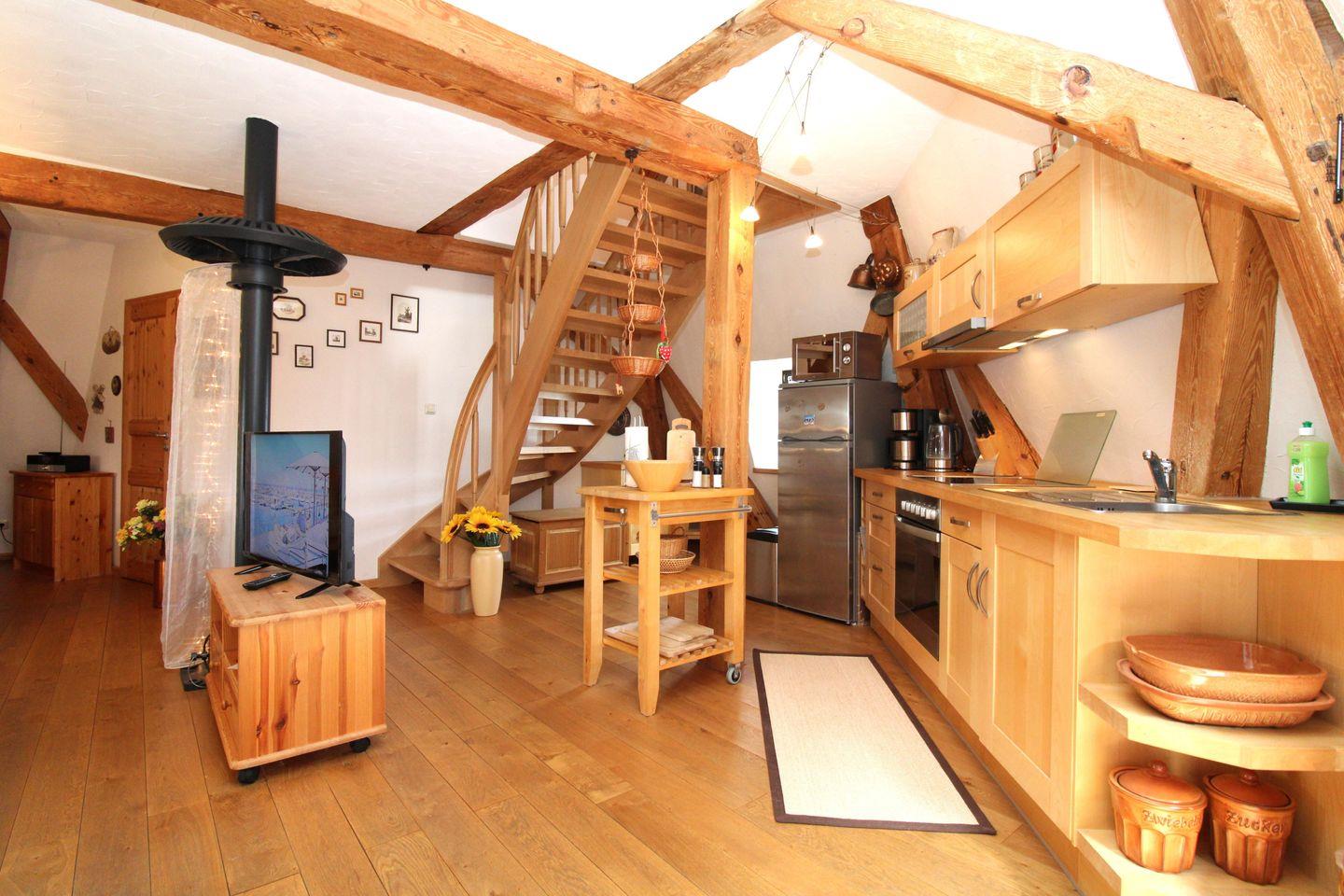 Bei dieser Fewo wohnen Sie direkt in der denkmalgeschützten und aufwändig renovierten historischen Windmühle mit sehr viel Fachwerk und sichtbarem Holzgebälk!