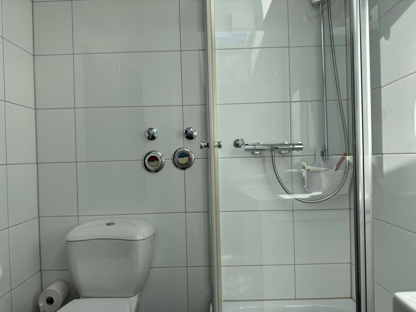 Die Wohnung verfügt über zwei Schlafzimmer: Eines ist mit einem Doppelbett ausgestattet, das zweite bietet ein praktisches Ausziehbett für bis zu zwei Personen. Das Badezimmer ist modern eingerichtet und verfügt über eine Dusche, ein WC, einen Waschtisch und einen Handtuchhalter.