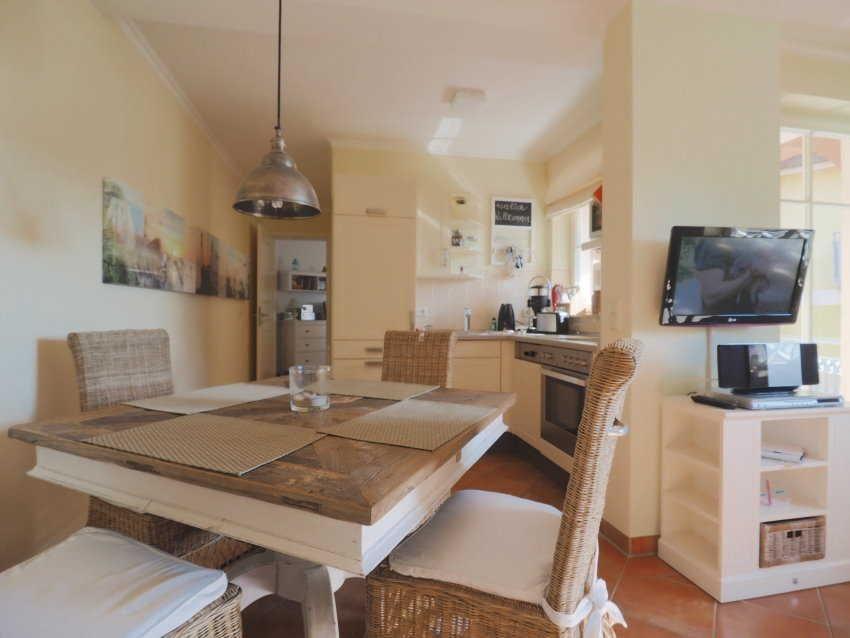 Der Wohnbereich mit bequemem Sofa und Sessel lädt zum Entspannen ein, während der offene Küchen- und Essbereich mit hochwertigen Möbeln der Marke Riviera Maison maritimes Flair und zeitlose Eleganz vereint. Hier entsteht eine Atmosphäre, in der man sich sofort zuhause fühlt.