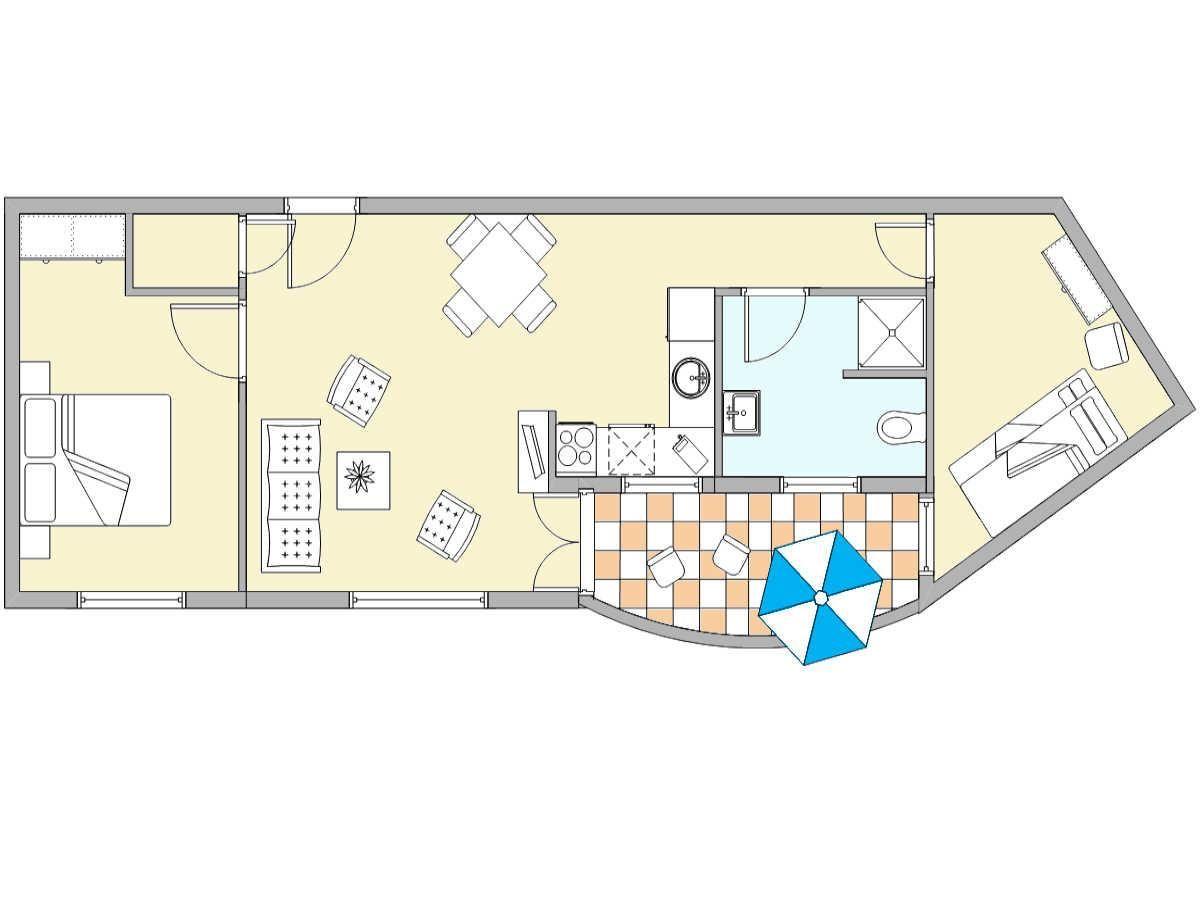 Das große Schlafzimmer bietet ein komfortables Doppelbett, einen geräumigen Kleiderschrank und einen zweiten Fernseher. Im zweiten Schlafzimmer stehen ein Einzelbett, eine stilvolle Kommode und ein kleiner TV bereit – ideal für Kinder oder Mitreisende.