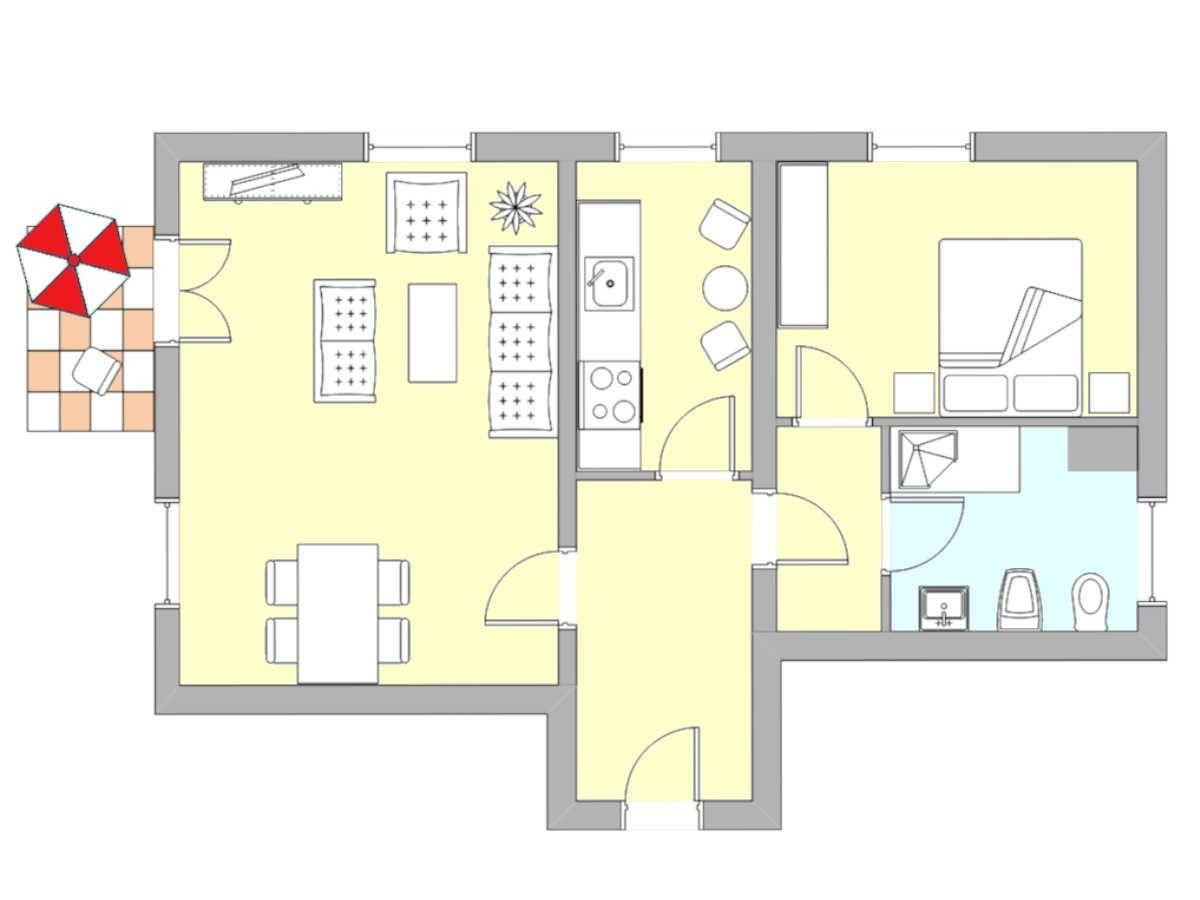 Die separate Küche ist vollständig ausgestattet und bietet zusätzlich Platz zum Frühstücken – ein idealer Start in den Urlaubstag.