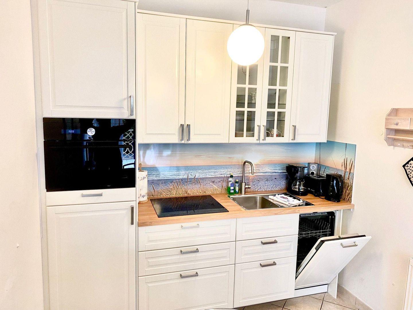 Im Schlafzimmer sorgt ein bequemes Doppelbett für erholsame Nächte, während das Badezimmer mit Badewanne entspannte Wellness-Momente ermöglicht – perfekt nach einem Tag am Meer oder einem langen Spaziergang.
