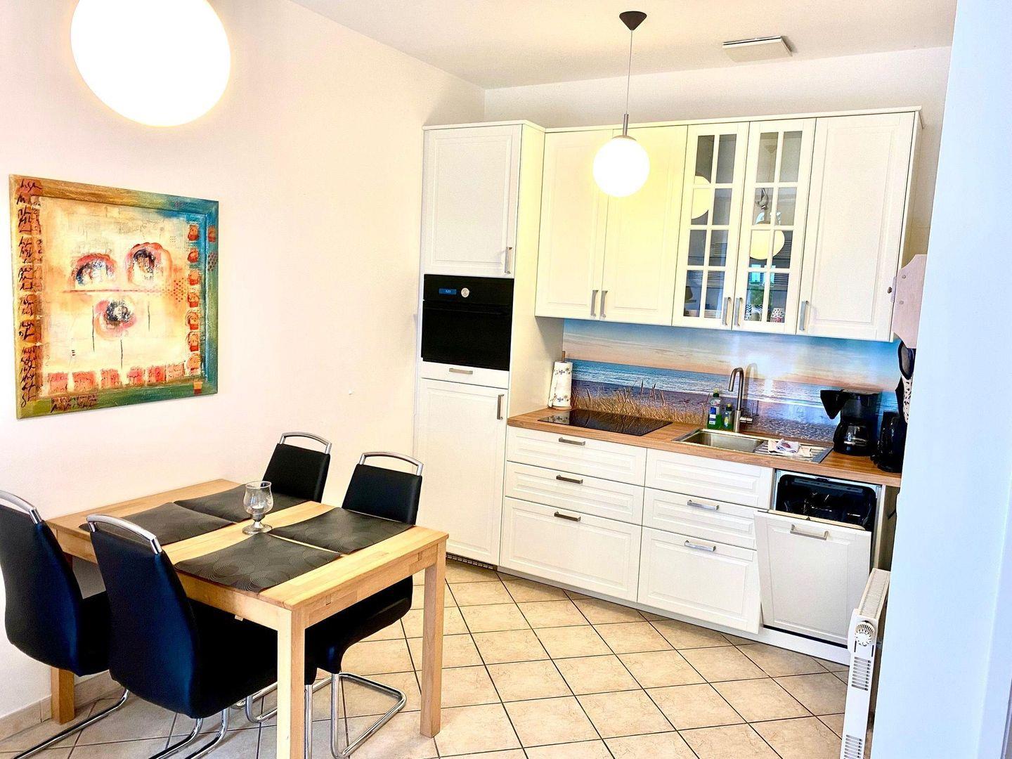 Der großzügige Wohnbereich empfängt Sie mit einer warmen, einladenden Atmosphäre. Das komfortable Schlafsofa schafft zusätzlichen Schlafplatz für eine dritte Person und macht die Wohnung ideal für Paare, kleine Familien oder Freunde. Die offene Küche ist vollständig ausgestattet und verbindet Kochen und Zusammensein auf besonders gemütliche Weise.