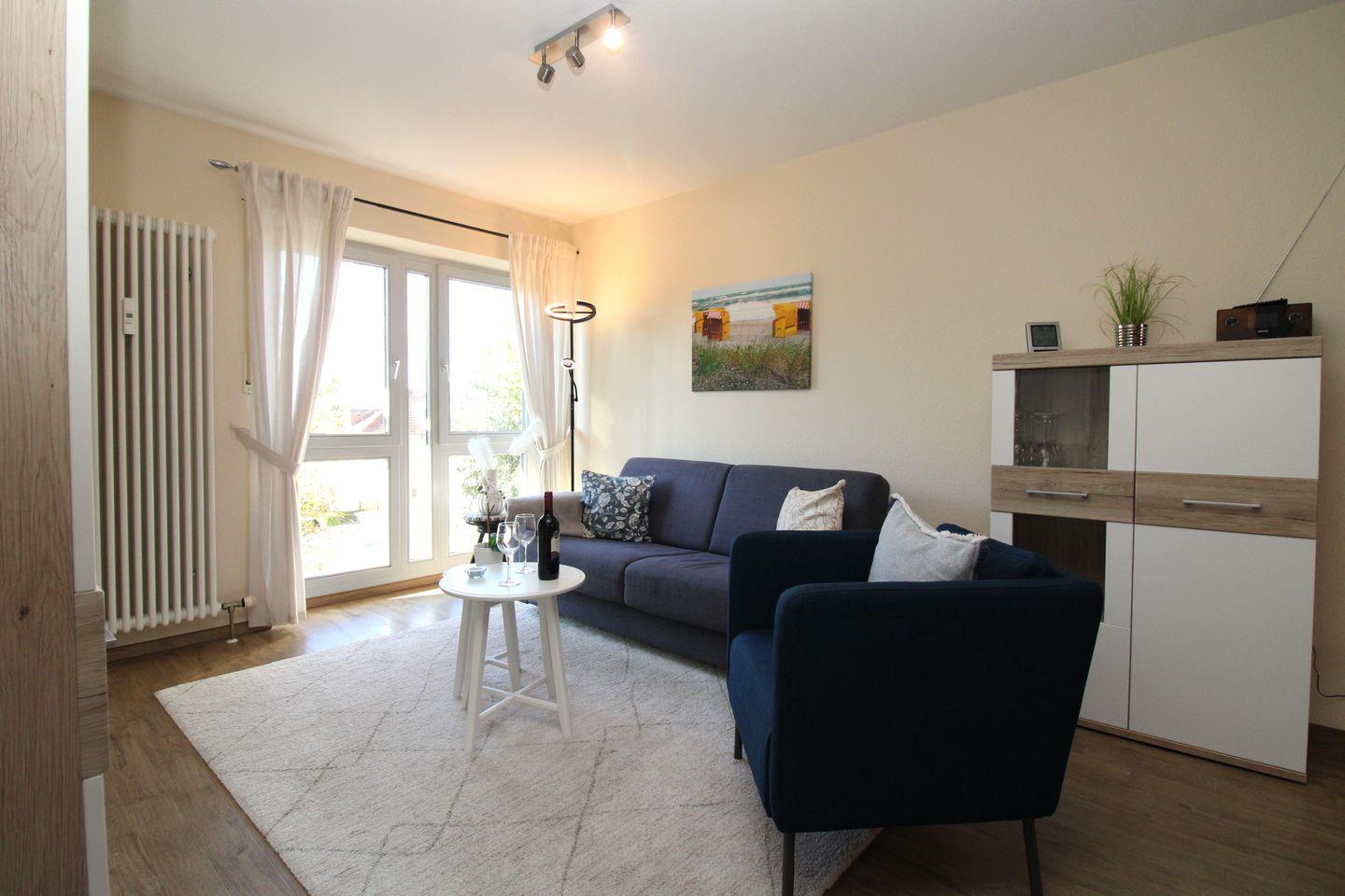 Die in unmittelbarer Strandnähe gelegene moderne und sehr schöne 2-Zimmer-Wohnung (ca. 61 m²) im 2. Obergeschoss besitzt ein hohes Maß an Wohlfühlkomfort und ist komplett eingerichtet. Durch die großen bodentiefen Fenster im Wohnzimmer und Schlafzimmer haben Sie auch einen seitlichen Blick auf den nahen Ostseestrand. Der Bodenbelag in den Wohnräumen ist ein hochwertiger Vinyl-Designbelag in edler Holzoptik, die Küche, der Eingangsbereich sowie das Bad / WC sind gefliest.