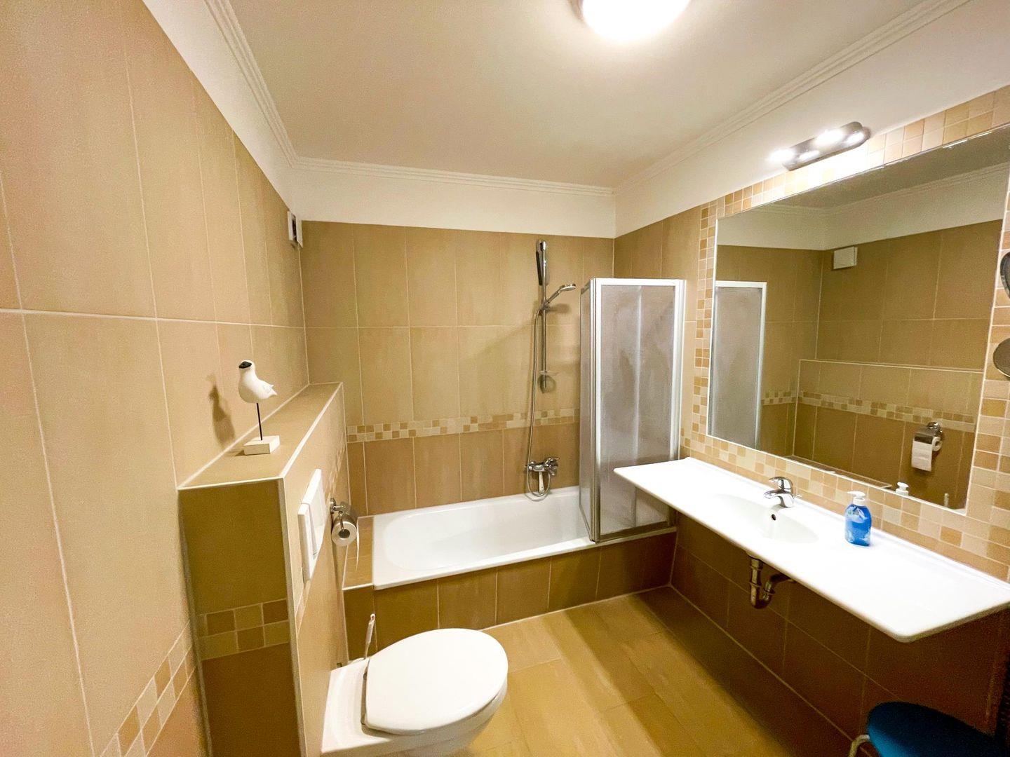 Das schöne Badezimmer mit Wanne und Duschvorrichtung rundet das Angebot dieser schönen Ferienwohnung ab. Darüber hinaus stehen ein Kosmetikspiegel sowie ein Handtuchhalter-Heizkörper dem Gast zur Verfügung.