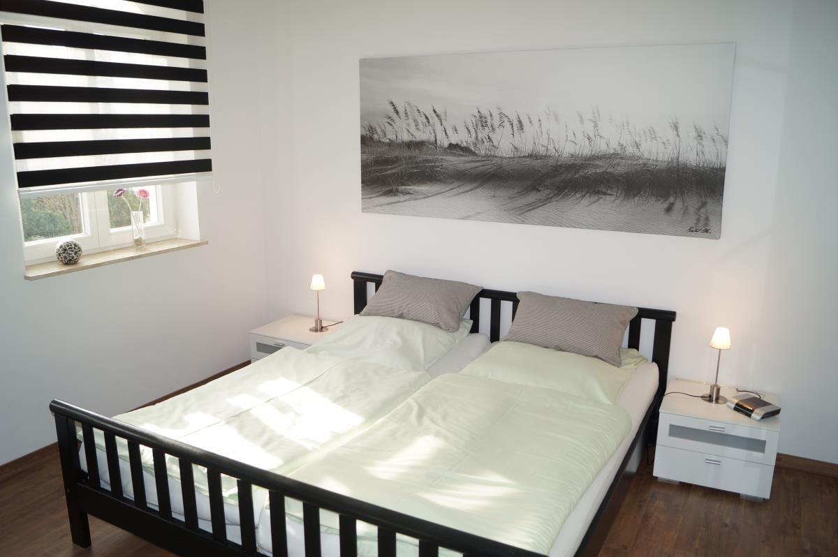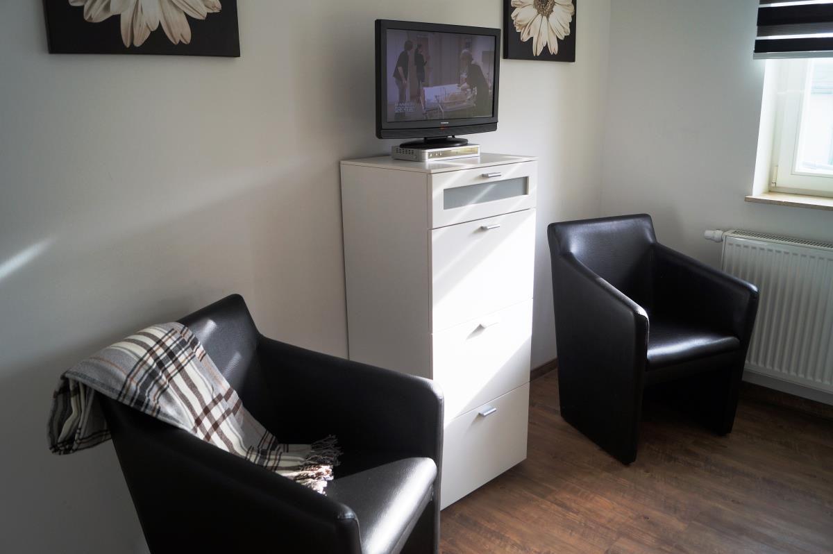 Ein Schlafzimmer ist mit einem Doppelbett (1,80 er Breite) und einem großen Kleiderschrank ausgestattet. Ein Flachbild-Fernseher sowie eine kleine Leseecke machen diesen Raum auch tagsüber zu einem attraktiven Rückzugsort. Das zweite Schlafzimmer verfügt über zwei Einzelbetten und ebenfalls einen Kleiderschrank.