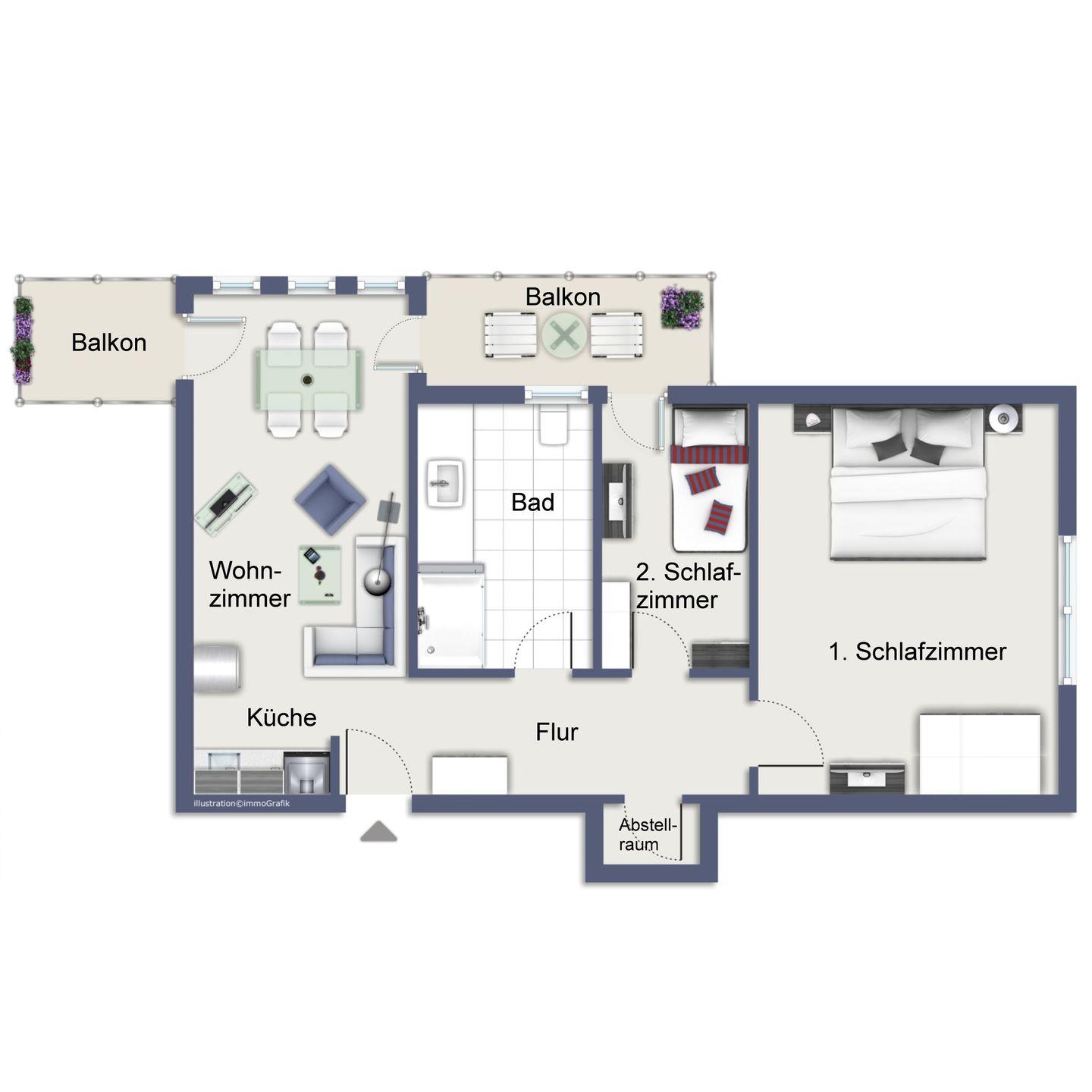 Der Ost-Balkon ist mit geschmackvollen Gartenmöbeln ausgestattet und lädt für entspannte Abende ein.