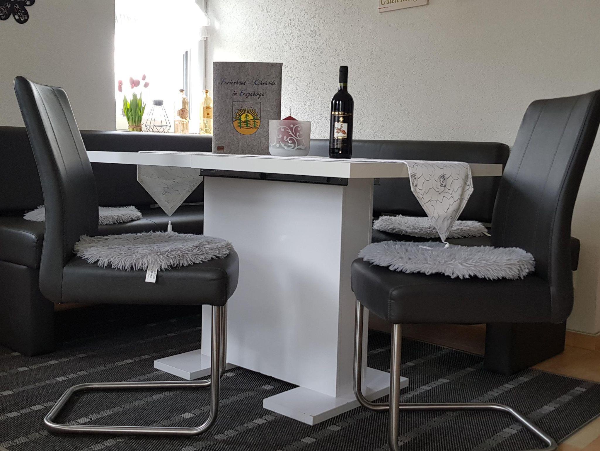 Unser Ferienhaus ist ca. 90qm groß und bietet Platz für bis max. 4 Personen. Die Küche ist voll ausgestattet und verfügt unter anderem über einen Geschirrspüler, Kaffeemaschine, Mikrowelle, einen Backofen, einen Kühlschrank mit Gefrierfach sowie einen Toaster und einen Wasserkocher. Das Esszimmer ist ausgestattet mit Sitzgruppe. Es gibt außerdem 2 Schlafzimmer, ein Wohnzimmer, ein Badezimmer mit einer modernen Dusche, sowie einen großen Aufenthaltsraum und einen schönen Garten. In beiden Schlafzimmern befindet sich jeweils ein Doppelbett in einem 1,80m x 2,00m im anderen 1,40m x 2,00m. Die Treppe ins Obergeschoss ist etwas steiler – wie es in der Erzgebirgsregion üblich ist. Wlan ist inklusive, ein Parkplatz steht vor der Tür für 2 Autos kostenfrei zur Verfügung. Handtücher und Bettwäsche sind vorhanden. Im Haus darf nicht geraucht werden. Haustiere sind nicht erlaubt.
