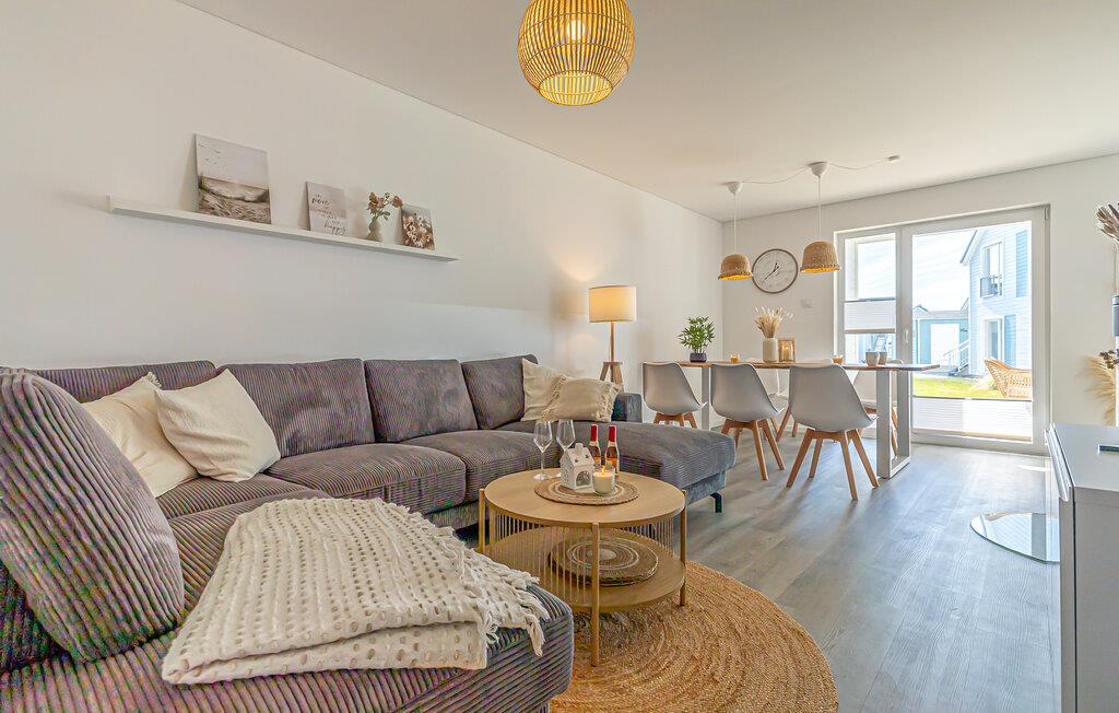 Når man træder ind i ferielejligheden, falder den hyggelige opholdsstue straks i øjnene med sin hyggelige opholdsstue. Den perfekte oase til afslappende familieaftener.