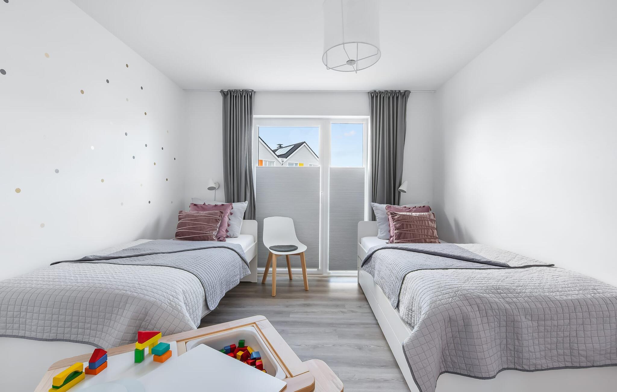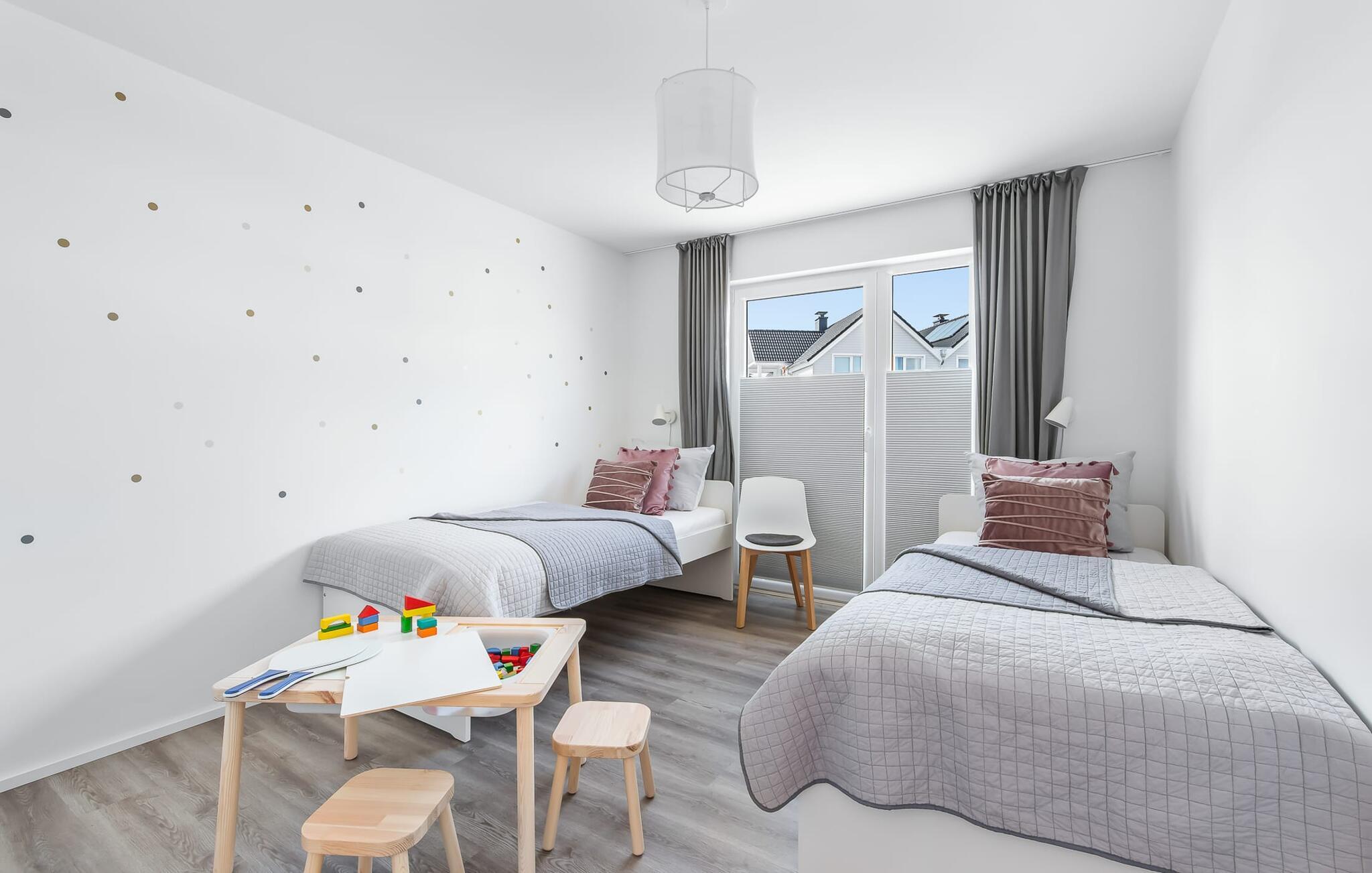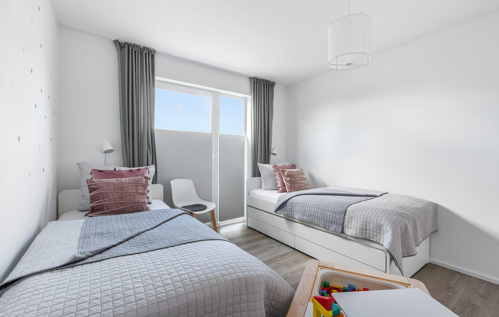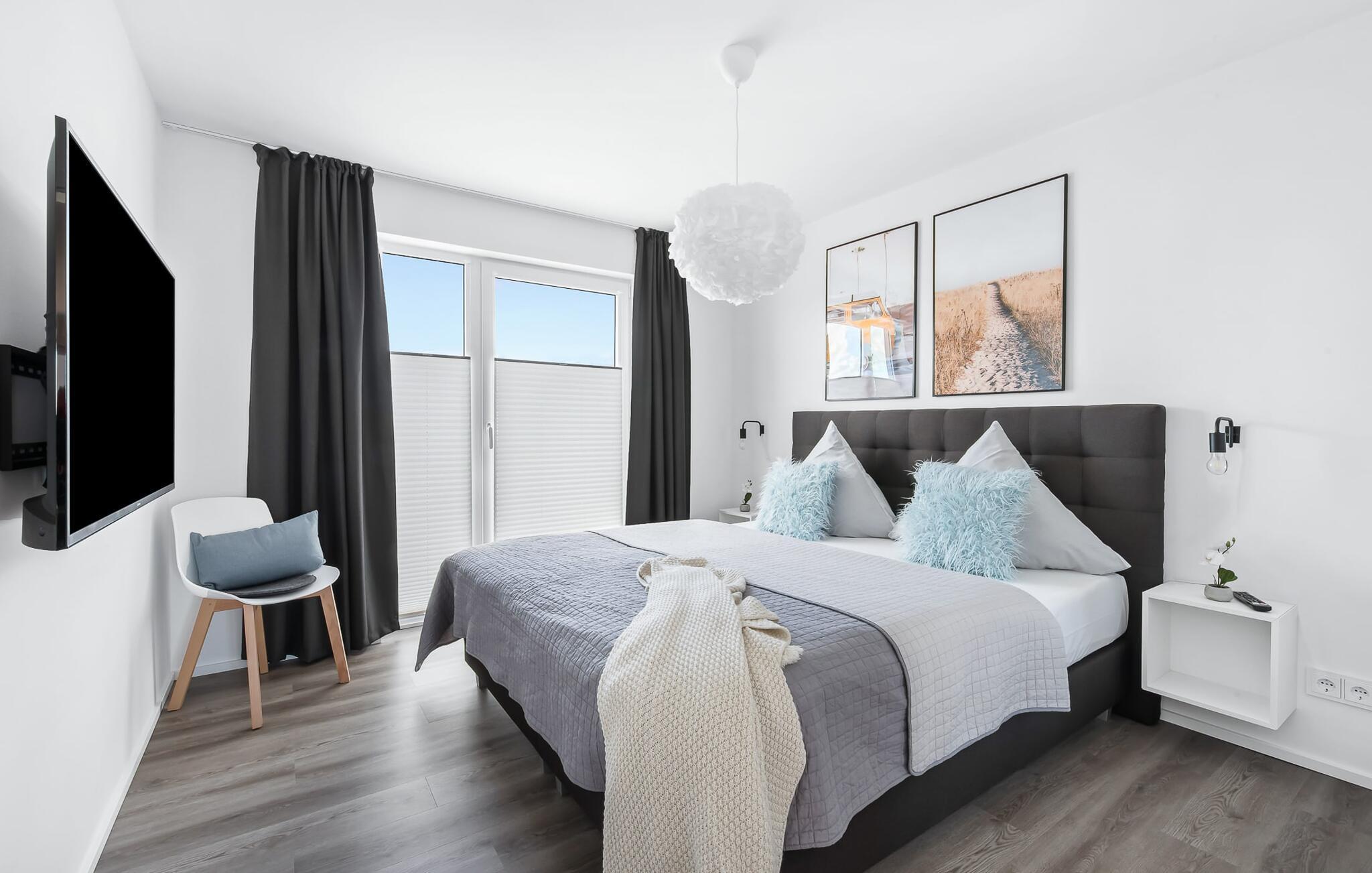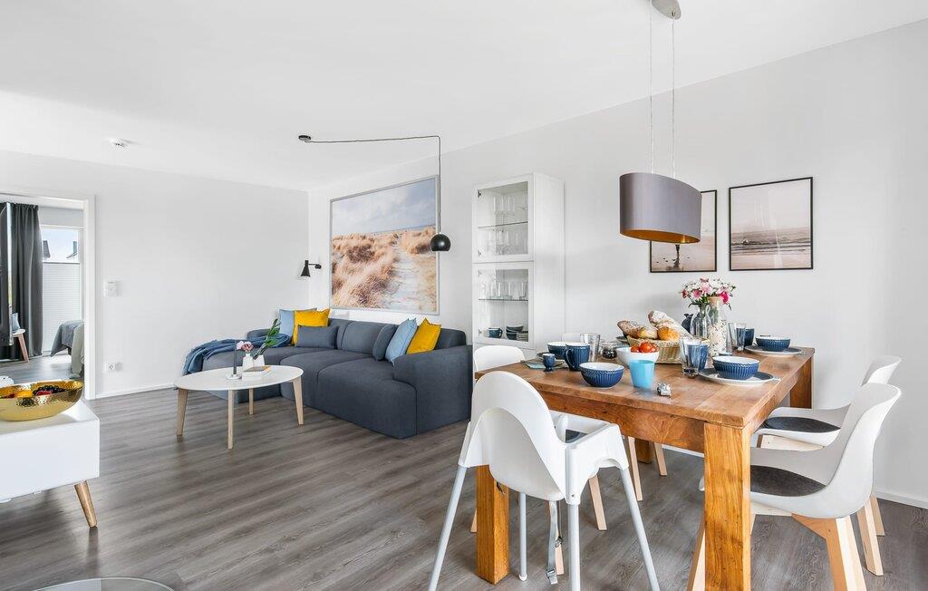 Drømmer I om en afslappende ferie ved Østersøen med hele familien? Så er COASTAL LOVE lige hvad I har brug for! I kan holde en skøn ferie her kun få minutters gang fra Weidefelds sandstrand, som har en kiosk og en rigtig hyggelig restaurant. Og hvis stranden ikke er jeres ting, er der en minigolfbane i nordisk stil i umiddelbar nærhed, som garanterer sjov for hele familien. Stranden er en smuk (næsten stenfri) sandstrand med et børnevenligt, større ståområde i starten. I højsæsonen overvåges dele af stranden af DLRG. KÜSTENLIEBE er indrettet i moderne skandinavisk stil, og den åbne og rummelige stue/alrum udstråler feriestemning fra første øjeblik. Det hyggelige sofahjørne med TV (via DVBT) og pejs inviterer til at dase eller spille spil sammen. I kan gennem vinduerne fra gulv til loft se ud til den tilstødende terrasse. Moderne havemøbler og en grill inviterer jer til at tilbringe selskabelige sommeraftener. Det indbyggede køkken lader intet tilbage at ønske, og kreativ madlavning bliver hurtigt en ny hobby her. Det store soveværelse er udstyret med en 1,80 m bred, komfortabel boxmadras. Det andet soveværelse kan tilpasses optimalt til beboernes behov som dobbeltseng eller med 2 enkeltsenge og en ekstra udtræksseng. Et legeområde med et malebord giver variation til de små gæster. Babyseng og barnestol er til rådighed i huset! På badeværelset, som er udstyret med alt hvad I behøver for at have det godt, venter den infrarøde kabine på jer til et omfattende forkælelsesprogram efter lange gåture på stranden. Den tærskelfri bruser fra gulv til loft lader intet tilbage at ønske efter et besøg på stranden. For at bade selv de mindste gæster er der også et babybadekar, der kan placeres i bruseren. I bliver også forkælet med to parkeringspladser foran huset. Og cykling er næsten obligatorisk i dette smukke område - I vil elske de brede kyster! Vores favoritsted: På terrassen bag huset, lytte til mågerne, der skriger i de behagelige afslappende stole og ser de lokale fugle i parken. Ren afslapning! Bemærk venligst: OstseeResort Olpenitz er meget populært, og der bygges fortsat i parken. Ikke desto mindre kan I se frem til en 5-stjernet standard og et førsteklasses ophold. Byggeaktiviteterne kommer ikke til at forstyrre jer på ferien, og derfor gives der ikke yderligere afslag i prisen.