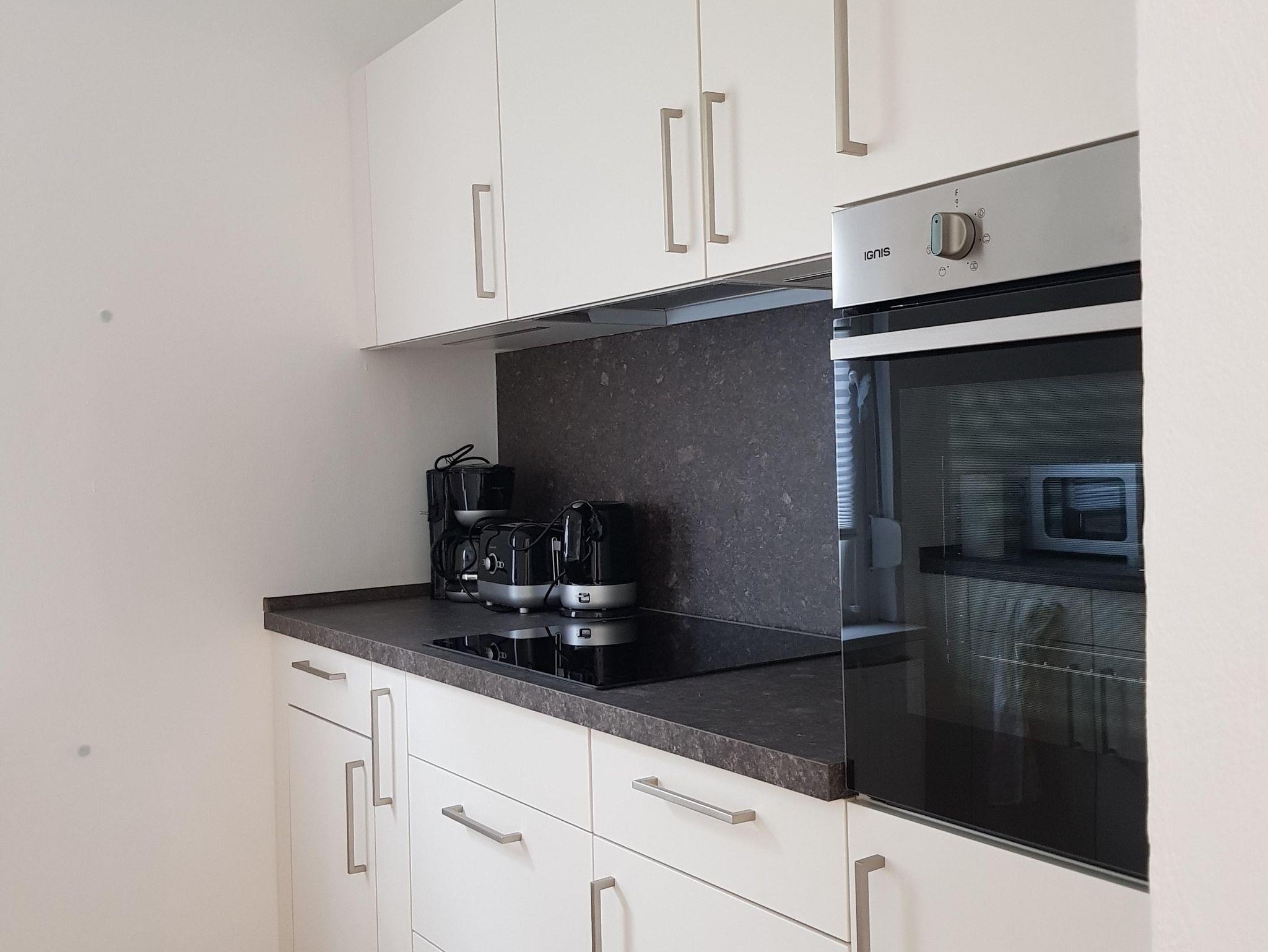 Die komplett neue Küche verfügt in 2 Küchenzeilen über viel Stauraum und ist vollständig ausgestattet mit einem Ceran E-Herd, Backofen in Augenhöhe, einer großen Kühl-/Gefrierkombination, weiteren Elektrogeräten und allen notwendigen Küchenutensilien für den täglichen Bedarf.